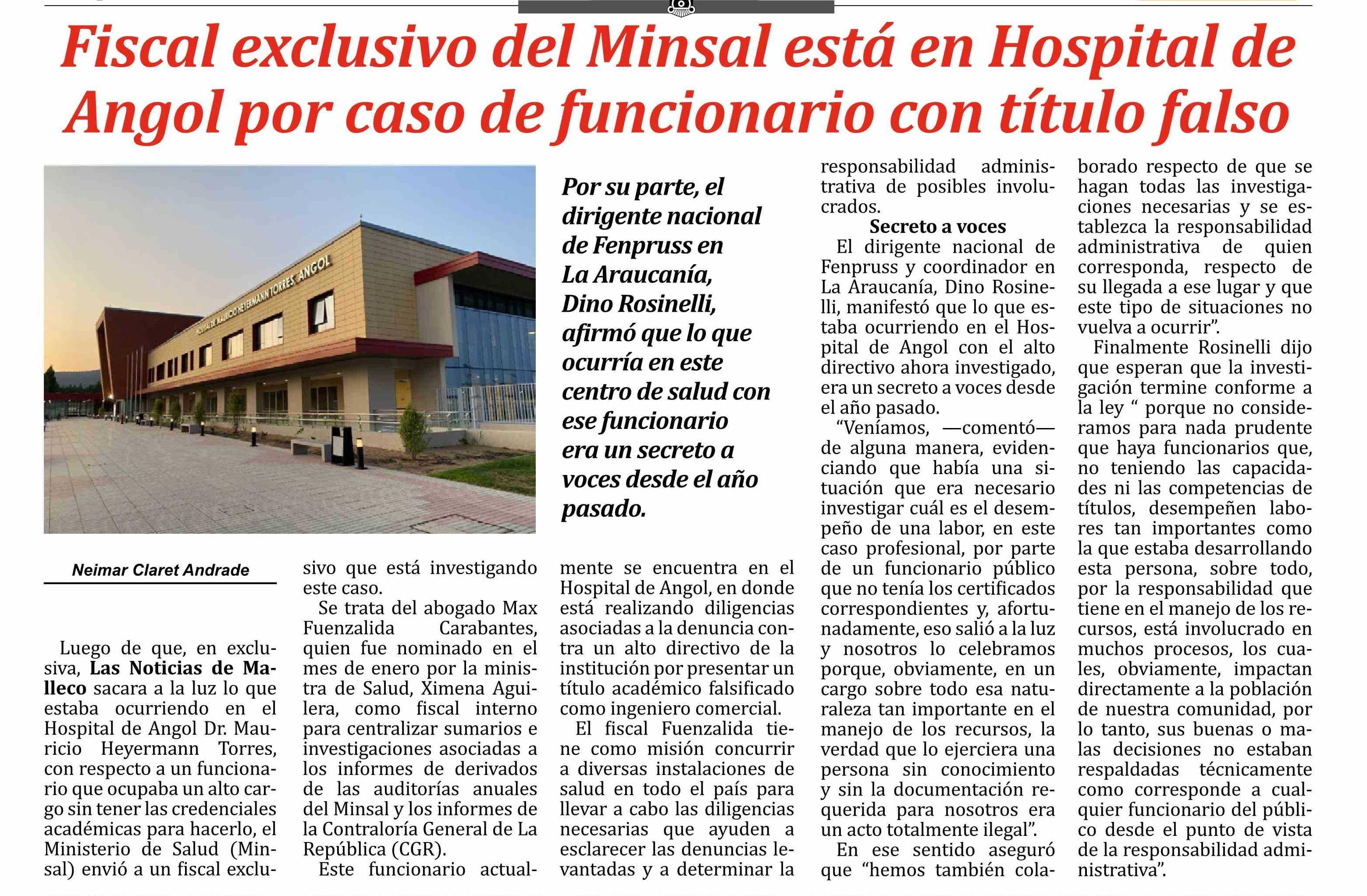 | Título: | Fiscal exclusivo del Minsal está en Hospital de Angol por caso de funcionario con título falso |