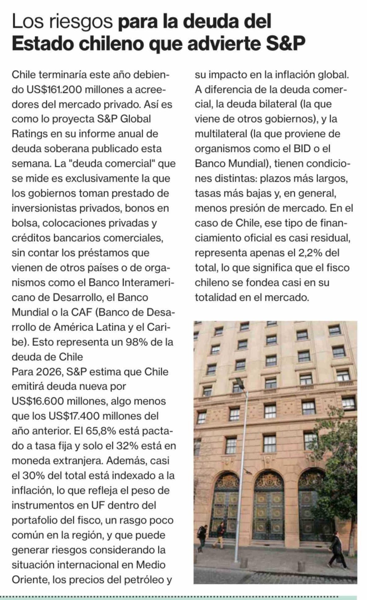 Los riesgos para la deuda del Estado chileno que advierte S&P 19-03-2026 La Segunda |