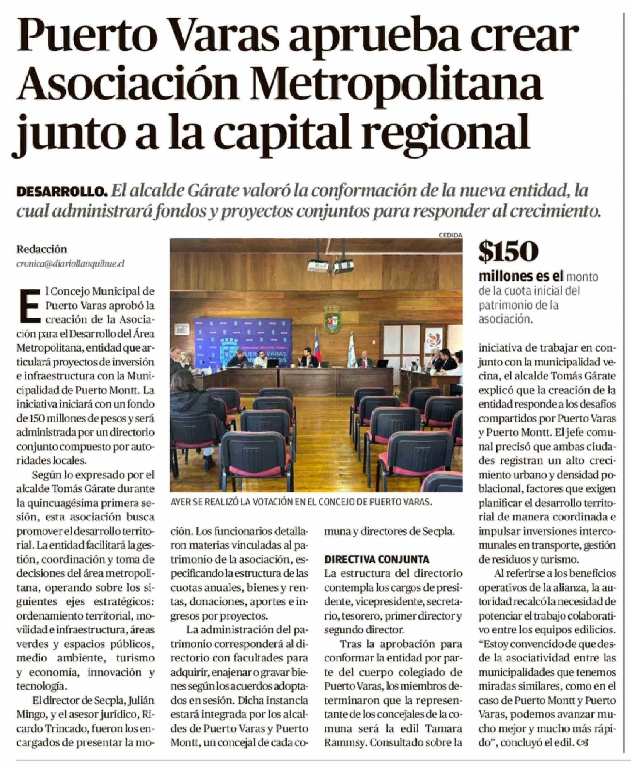 | Título: | Puerto Varas aprueba crear Asociación Metropolitana junto a la capital regional |