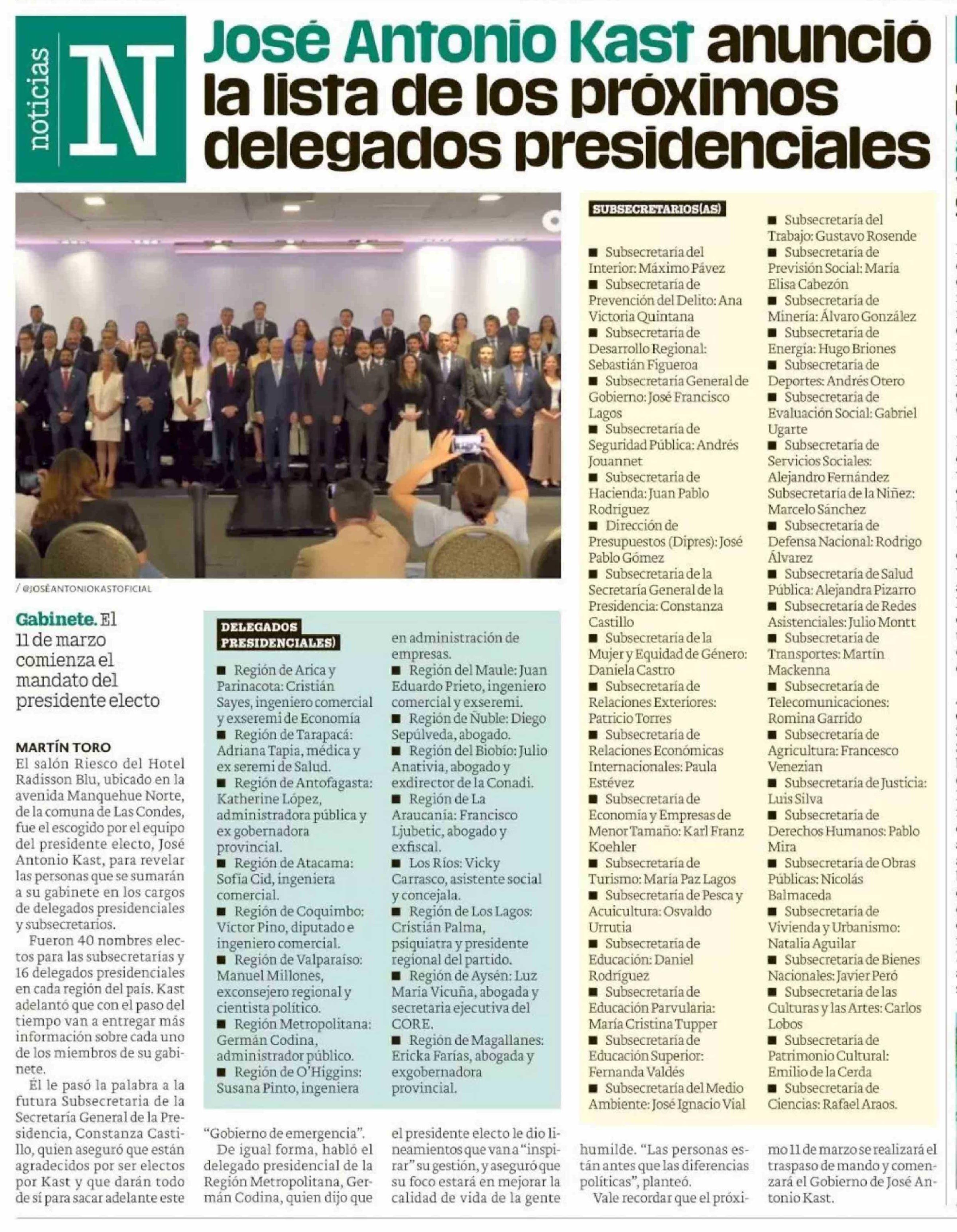 Título: Jose Antonio Kast anuncio la lista de los proximos delegados presidenciales