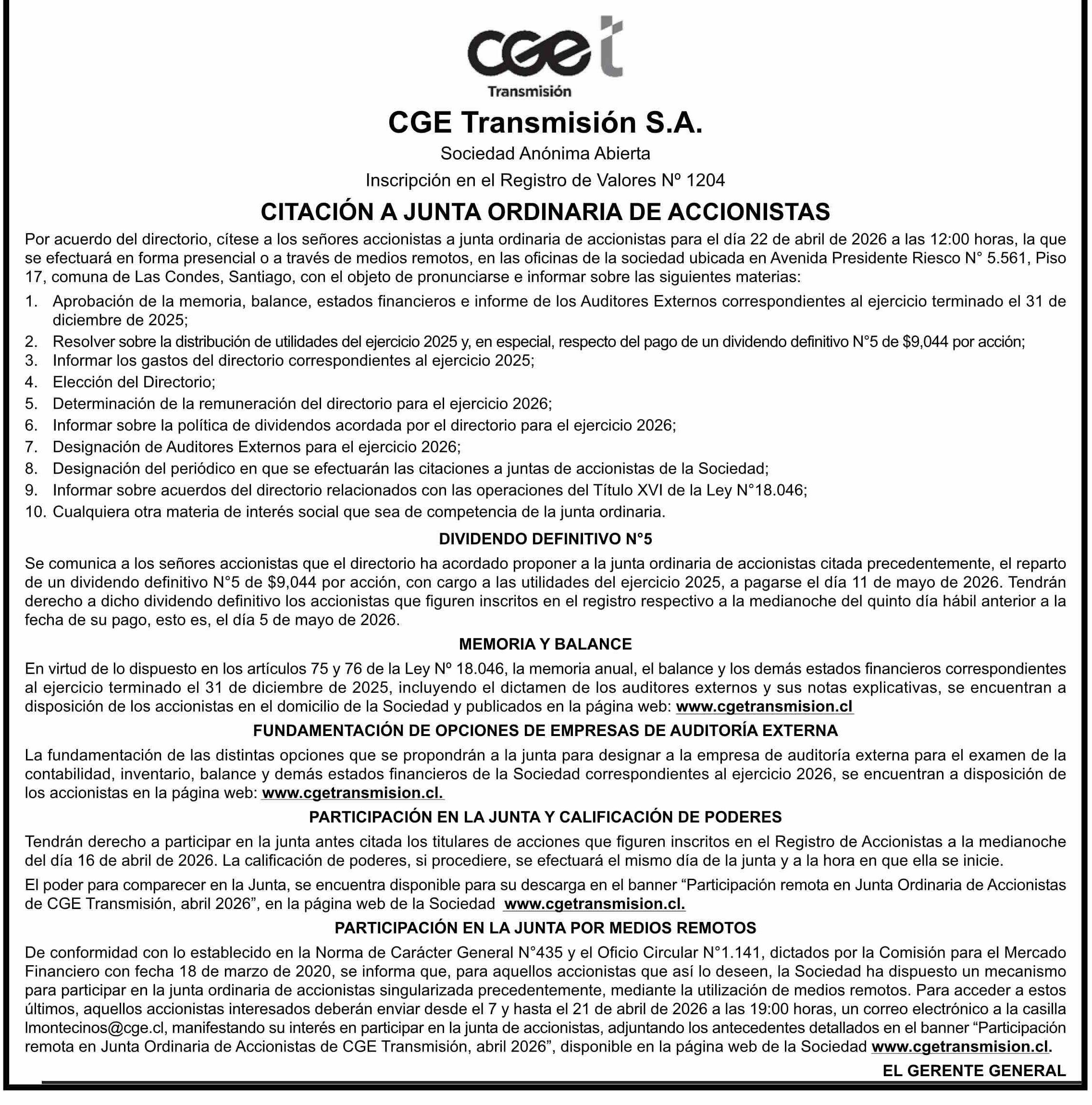 Fecha: 08-04-2026 Sector: Extractos Región: Región Metropolitana de Santiago