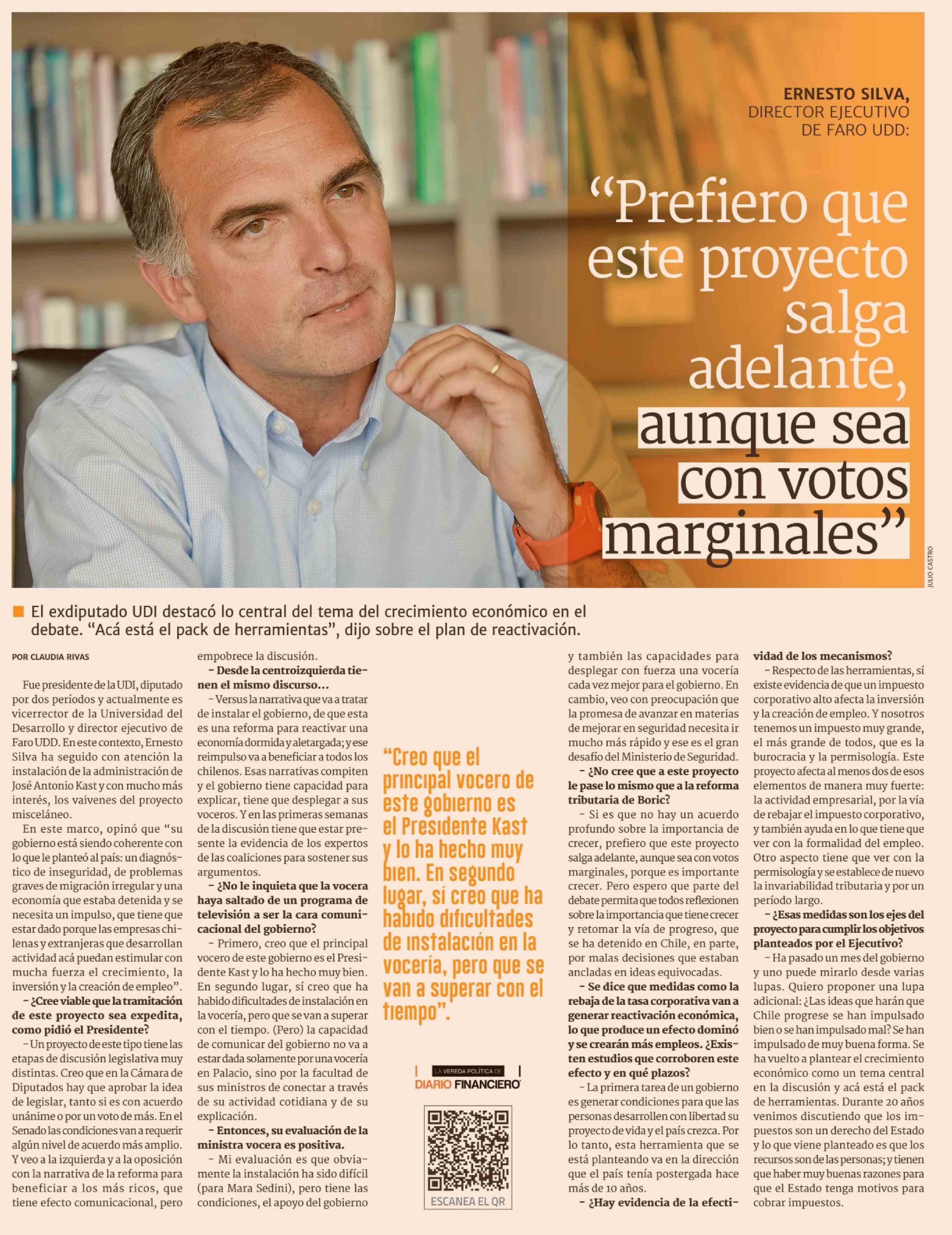 Título: "Prefiero que este proyecto salga adelante, aunque sea con votos marginales'