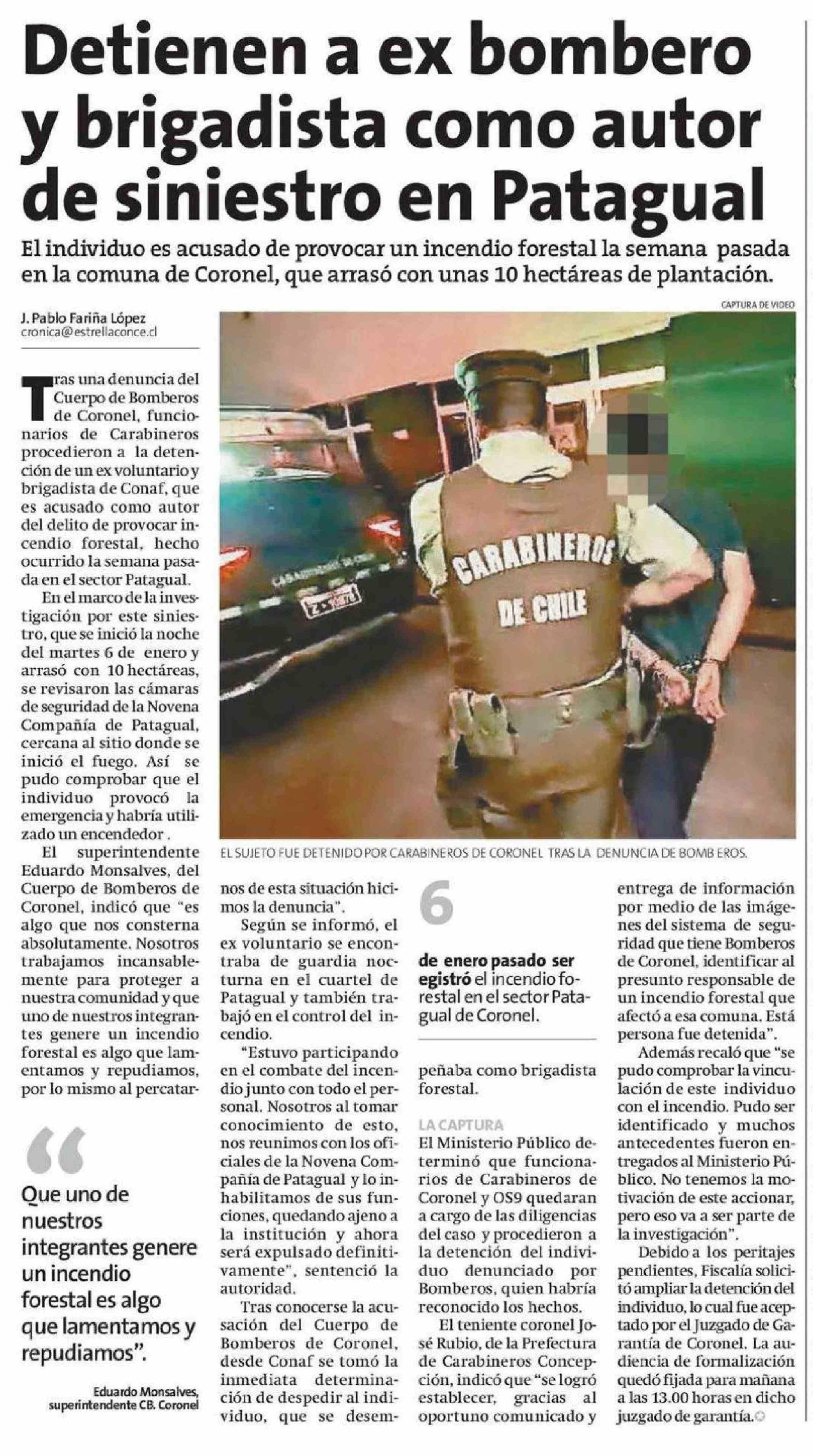 Título: Detienen a ex bombero y brigadista como autor de siniestro en Patagual