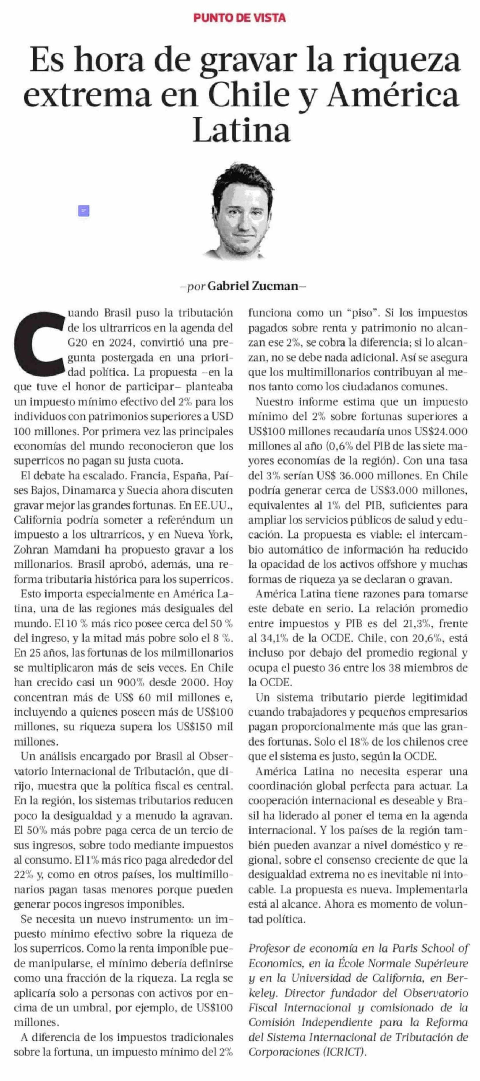 Título: Columnas de Opinión: Es hora de gravar la riqueza extrema en Chile y América Latina