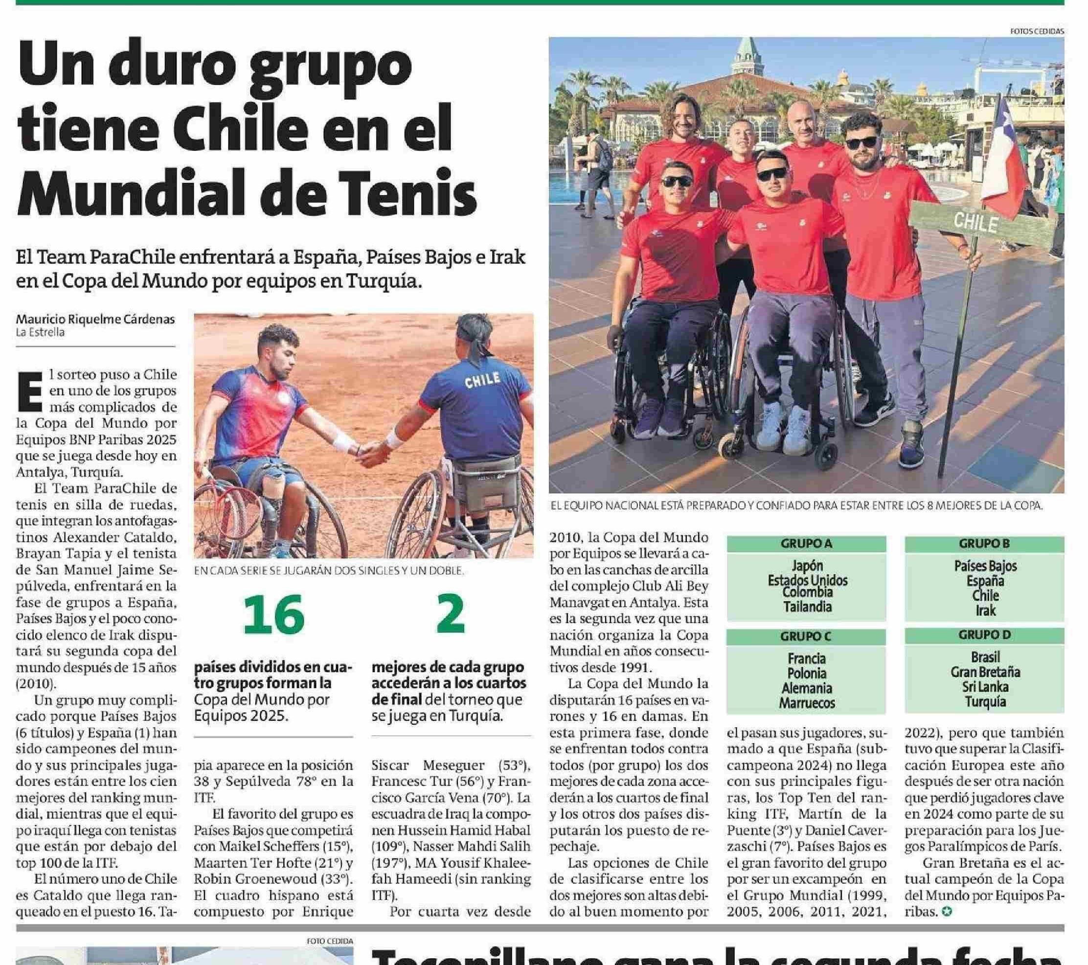Un duro grupo Mundial de Tenis tiene Chile en el 06-05-2025 La Estrella de Antofagasta |