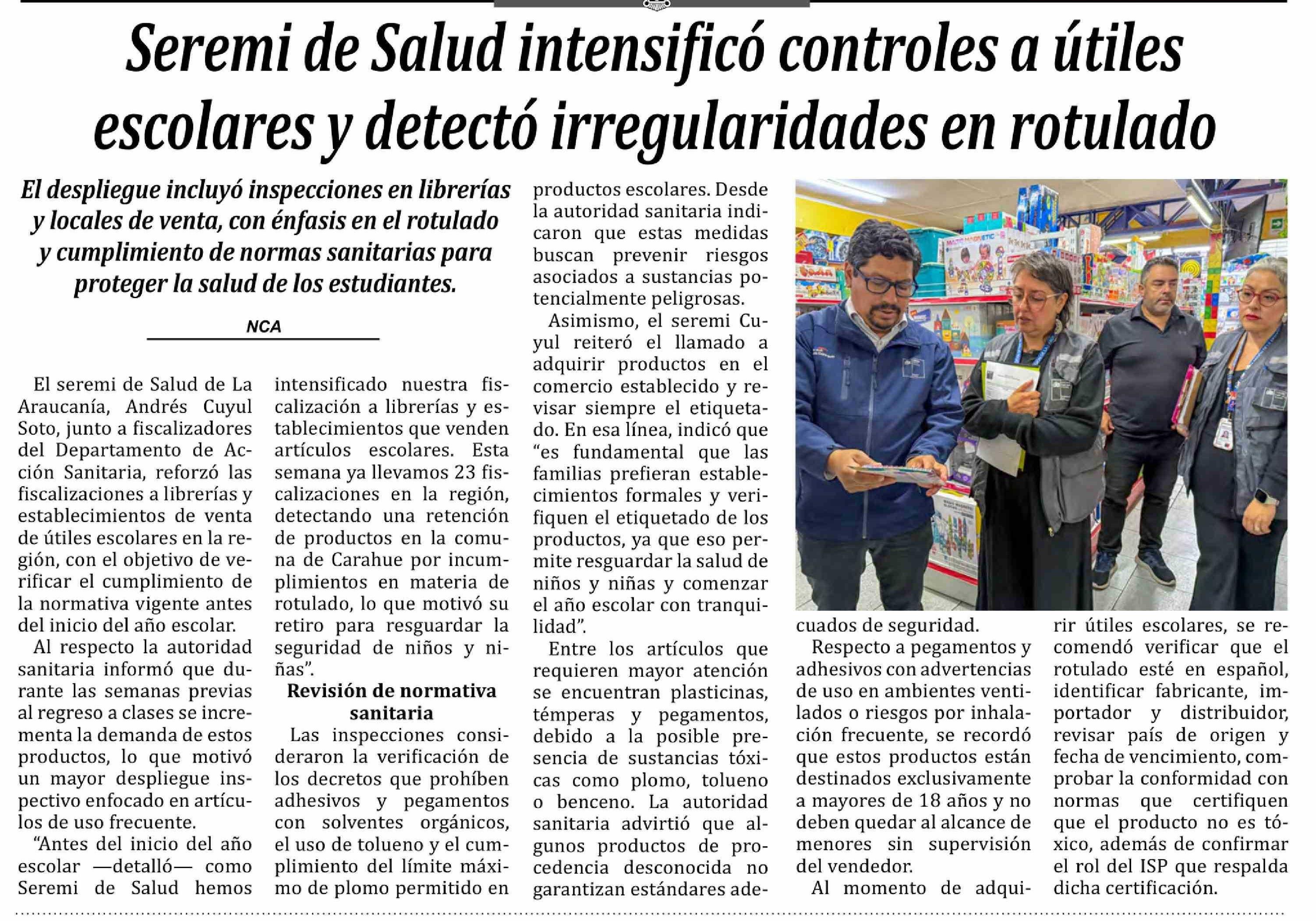 | Título: | Seremi de Salud intensificó controles a útiles escolares y detectó irregularidades en rotulado |