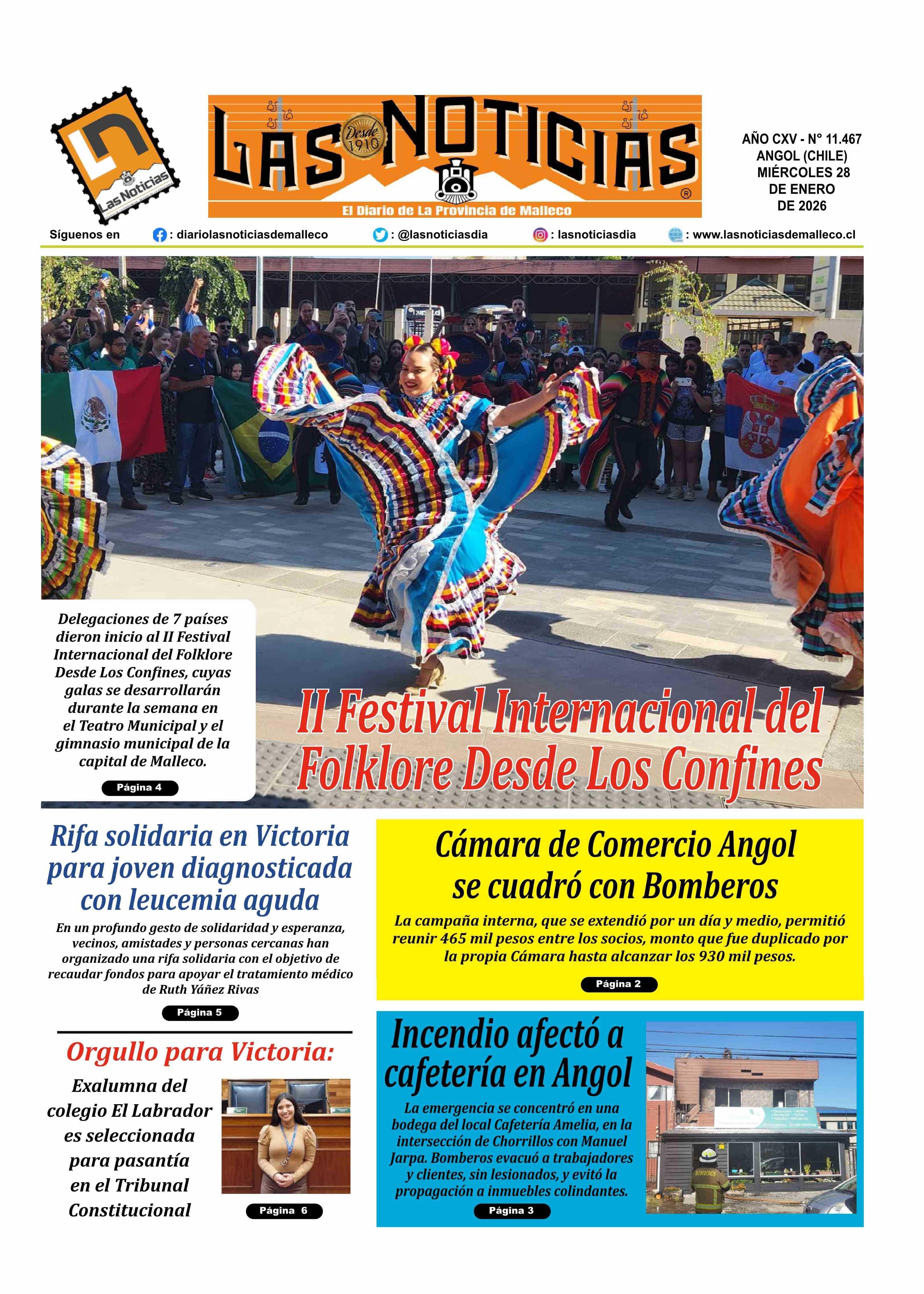 PORTADA LAS NOTICIAS DE MALLECO CHILE 28-01-2026 Las Noticias |
