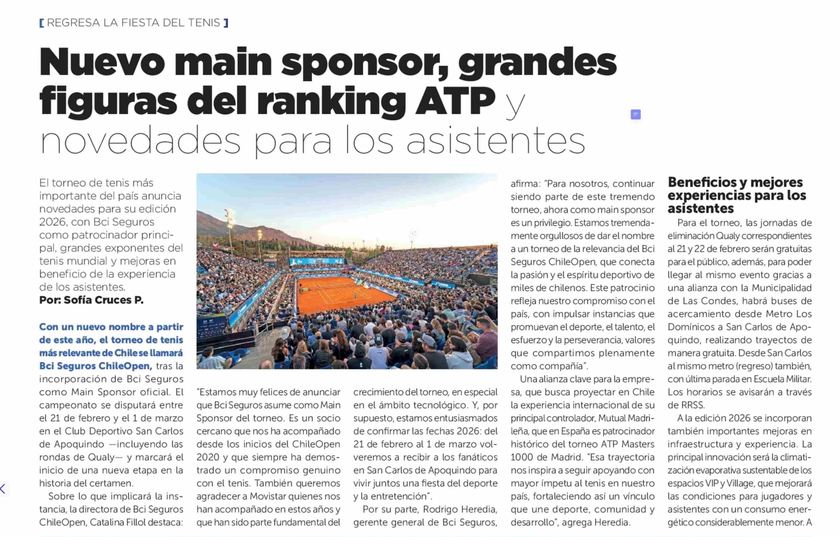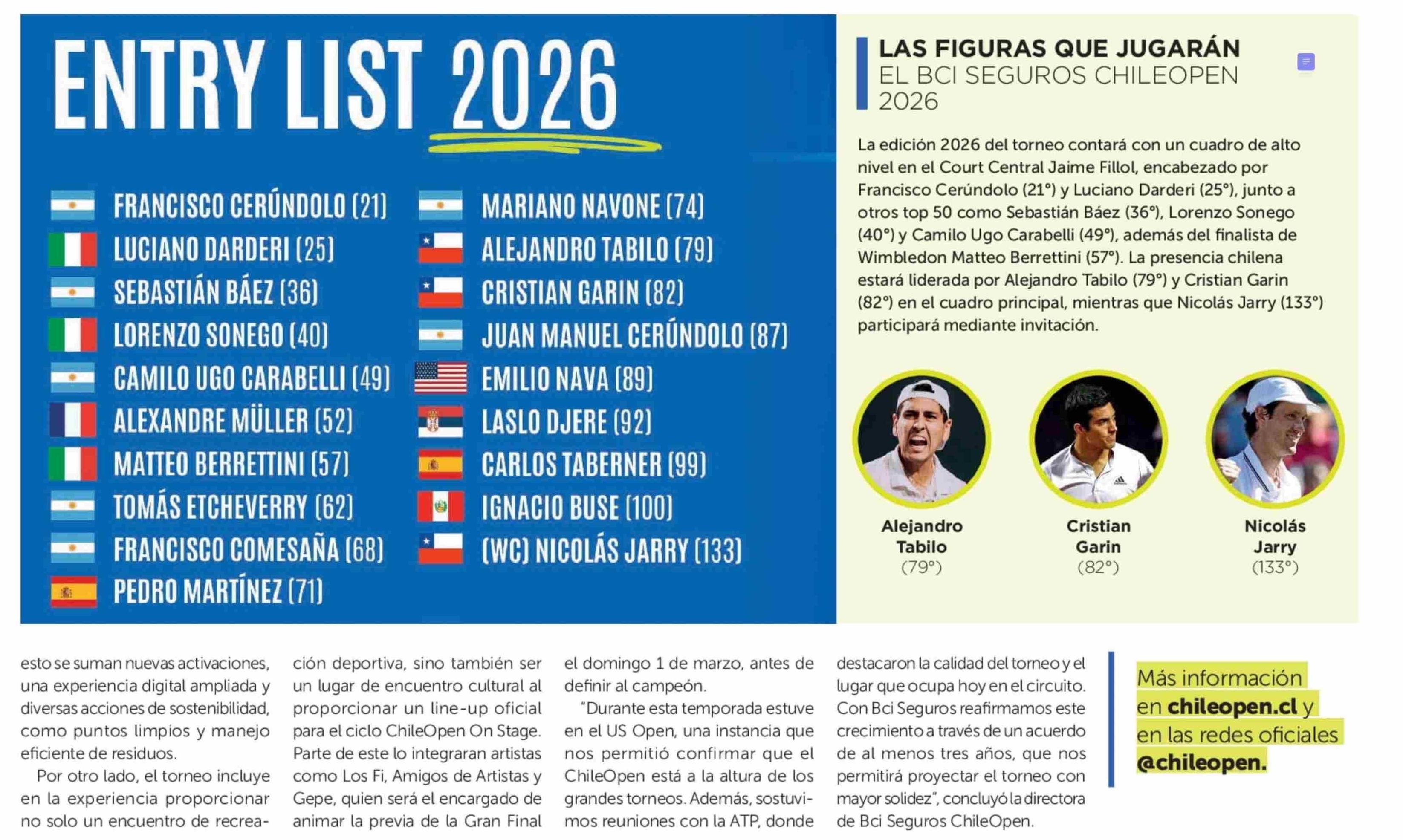 Nuevo main sponsor, grandes figuras del ranking ATP y novedades para los asistentes 15-02-2026 La Tercera |