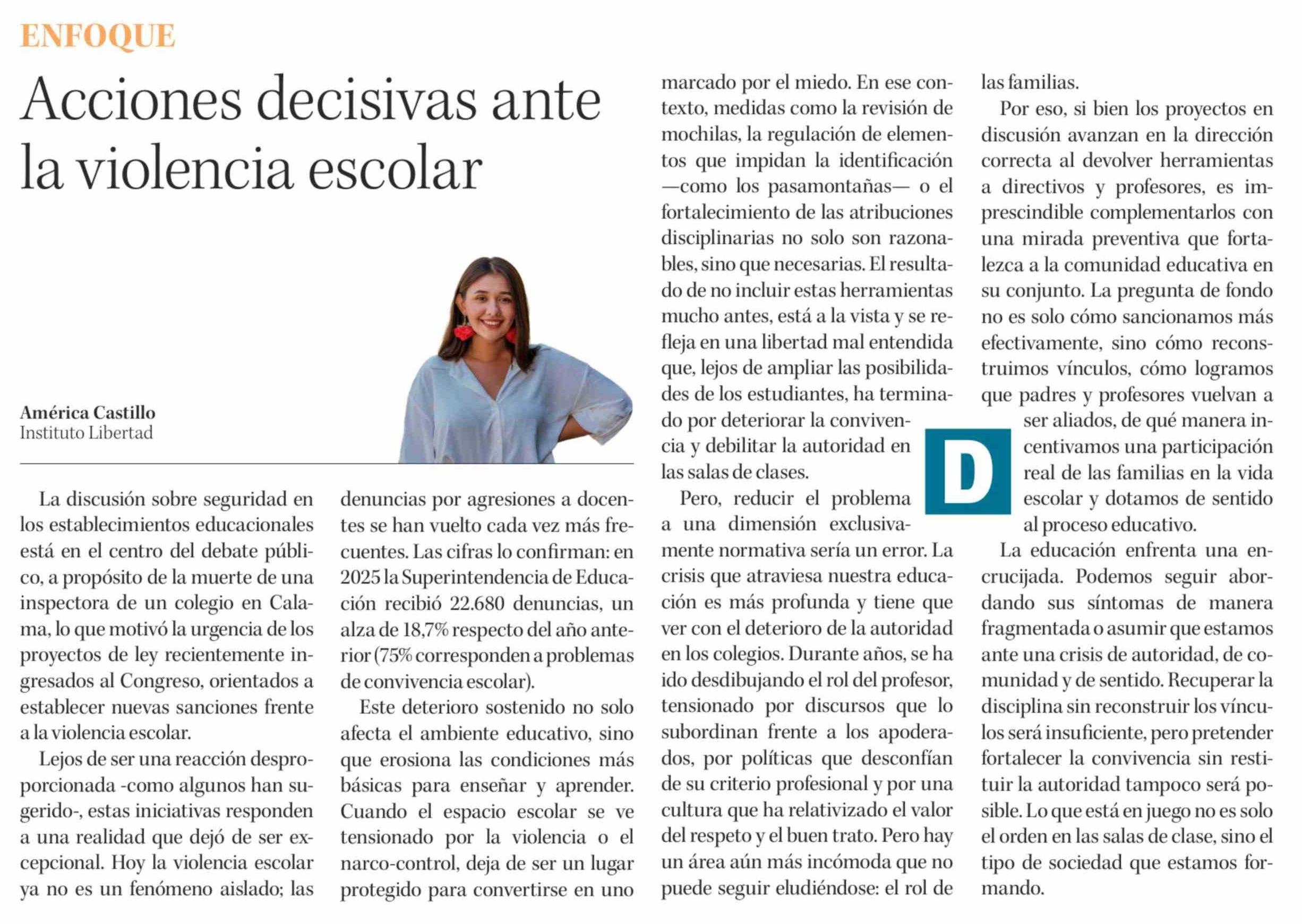Columnas de Opinión: Acciones decisivas ante la violencia escolar 13-04-2026 Diario Concepción |