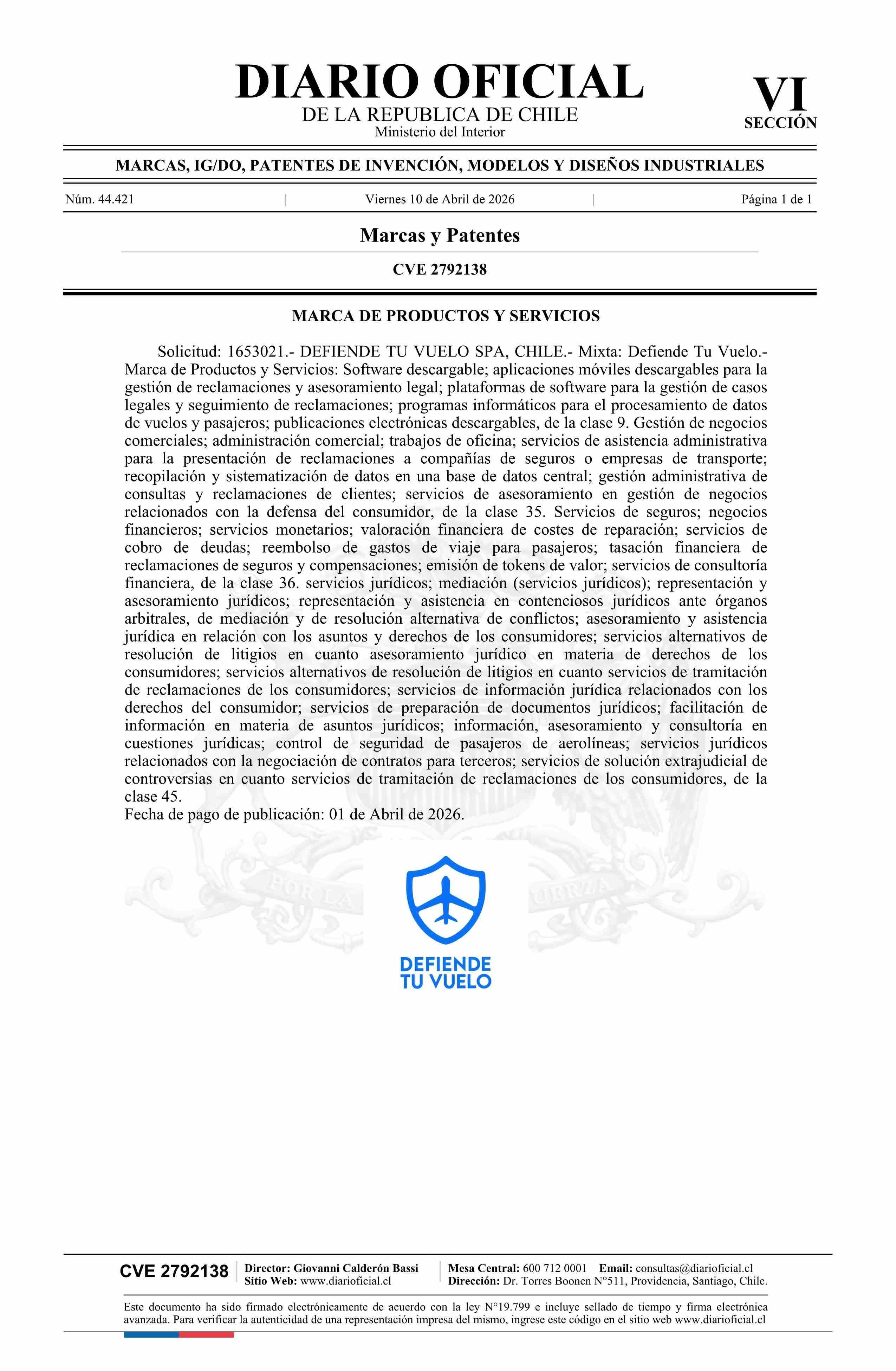 Título: Solicitud número 1653021.- Defiende Tu Vuelo