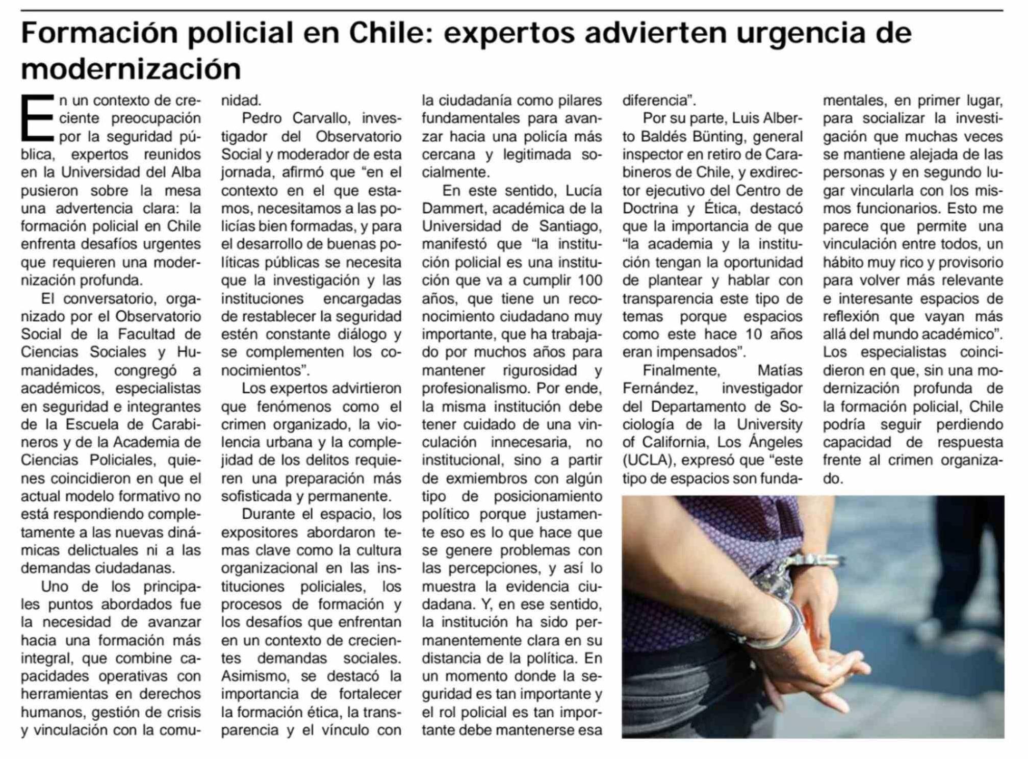| Título: | Formación policial en Chile: expertos advierten urgencia de modernización |