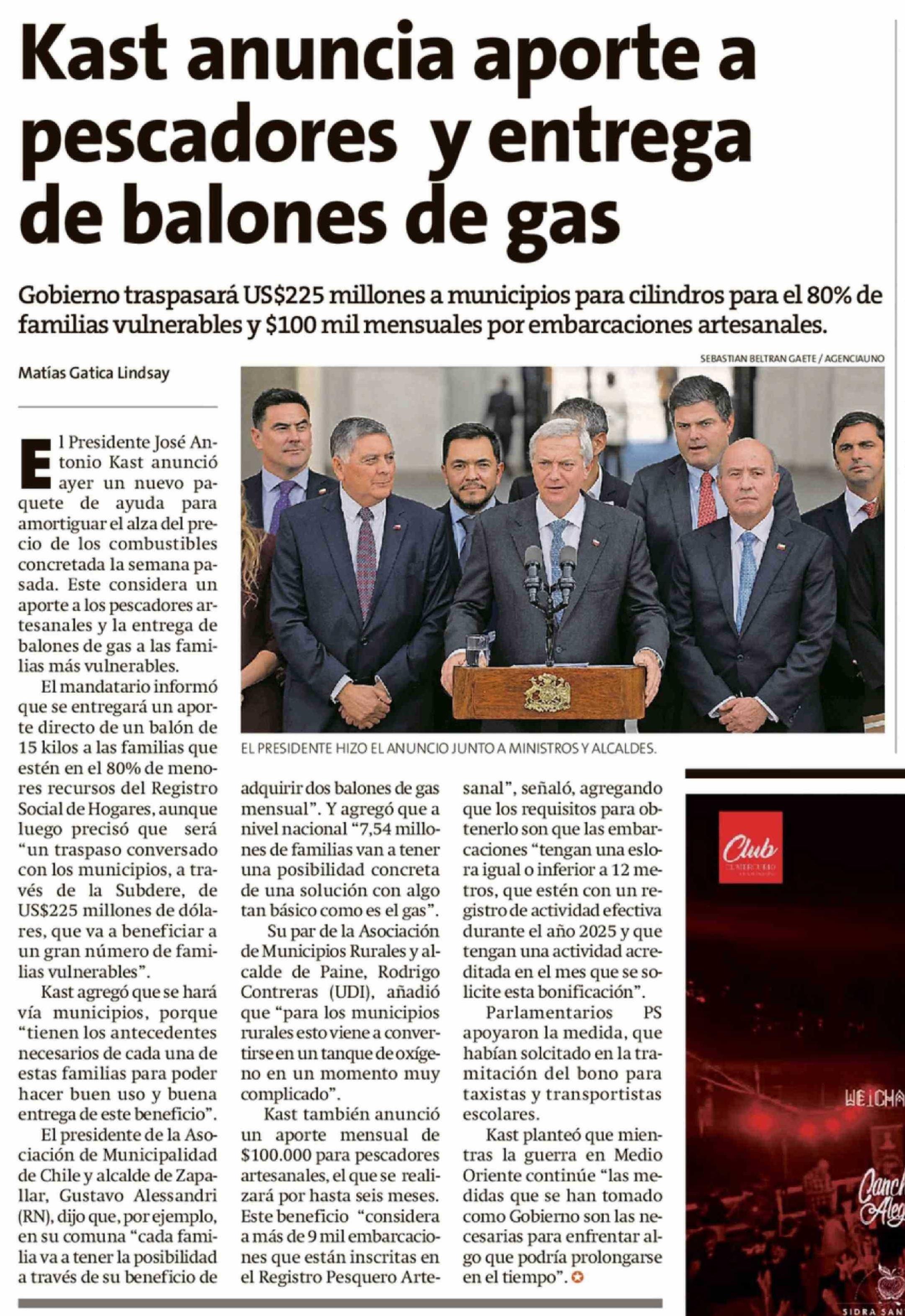 Kast anuncia aporte a pescadores y entrega de balones de gas 02-04-2026 La Estrella de Valparaíso |