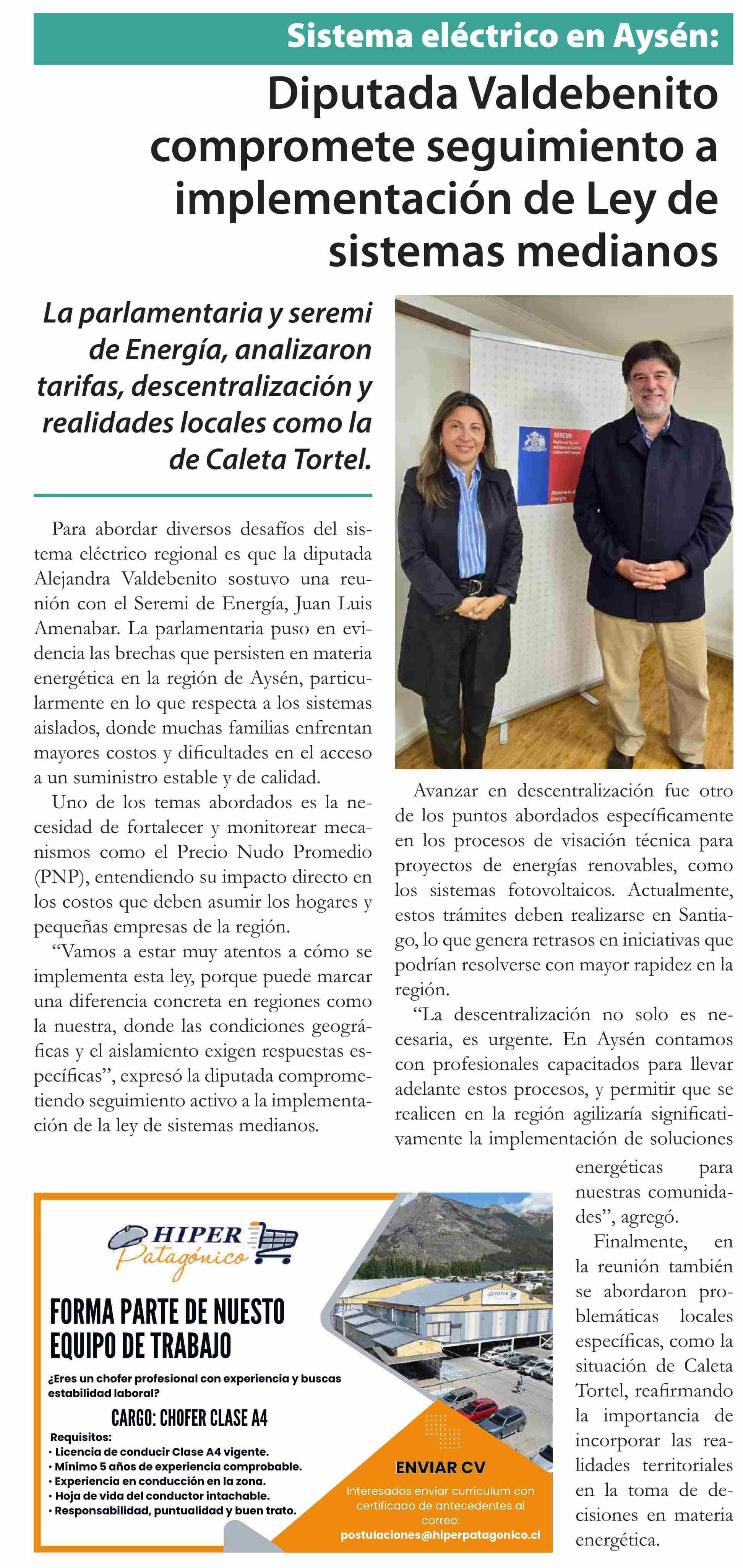 Diputada Valdebenito compromete seguimiento a implementación de Ley de sistemas medianos 13-04-2026 El Divisadero |