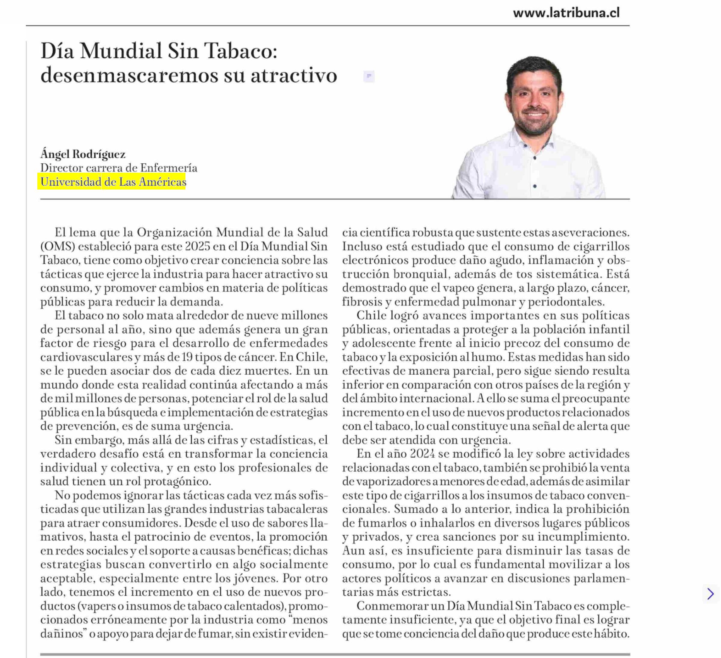 Día Mundial Sin Tabaco: desenmascaremos su atractivo 31-05-2025 La Tribuna |