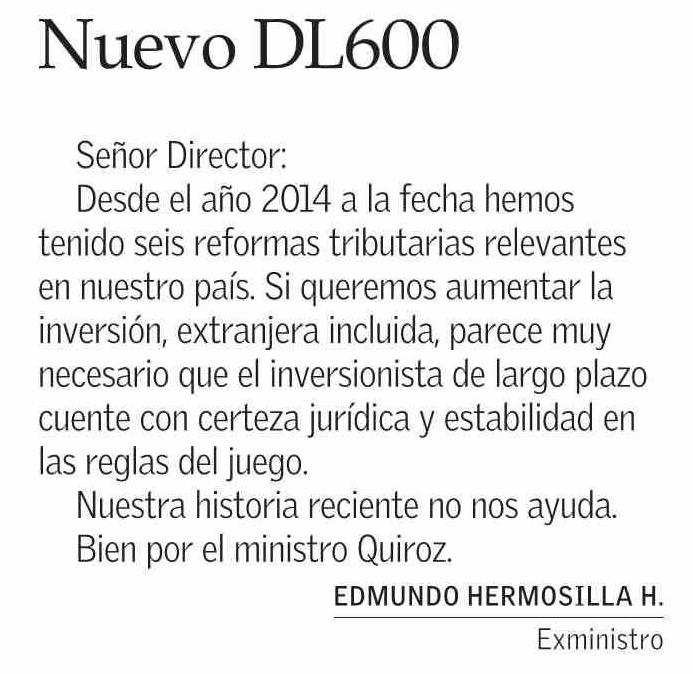 CARTAS: Nuevo DL600 18-04-2026 El Mercurio |