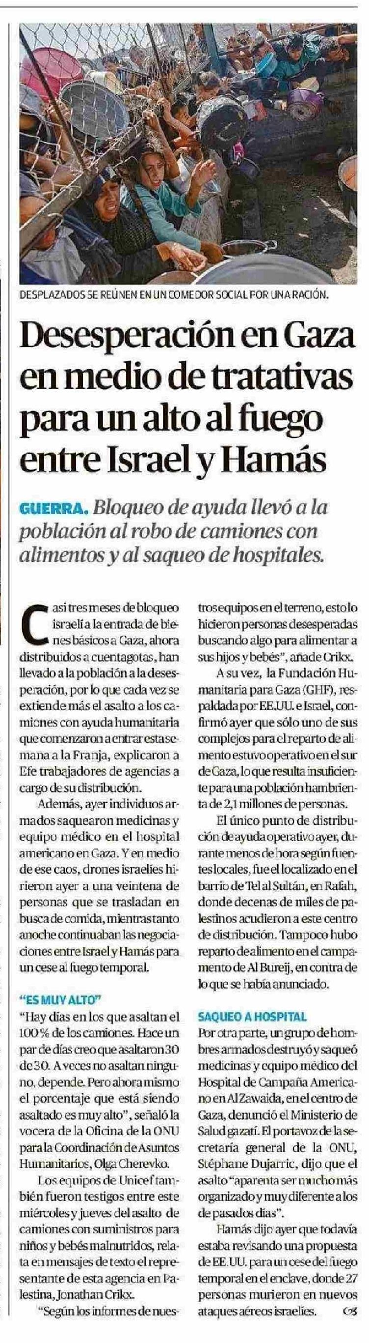 Desesperación en Gaza en medio de tratativas entre Israel y Hamás para un alto al fuego 31-05-2025 El Mercurio de Valparaíso |