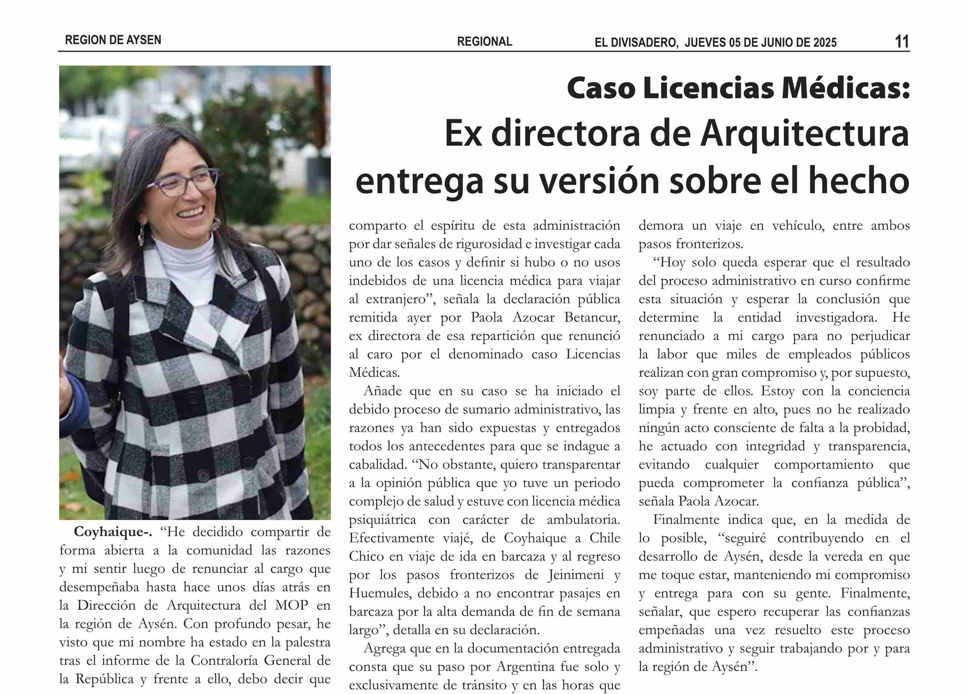Ex directora de Arquitectura entrega su versión sobre el hecho 05-06-2025 El Divisadero |