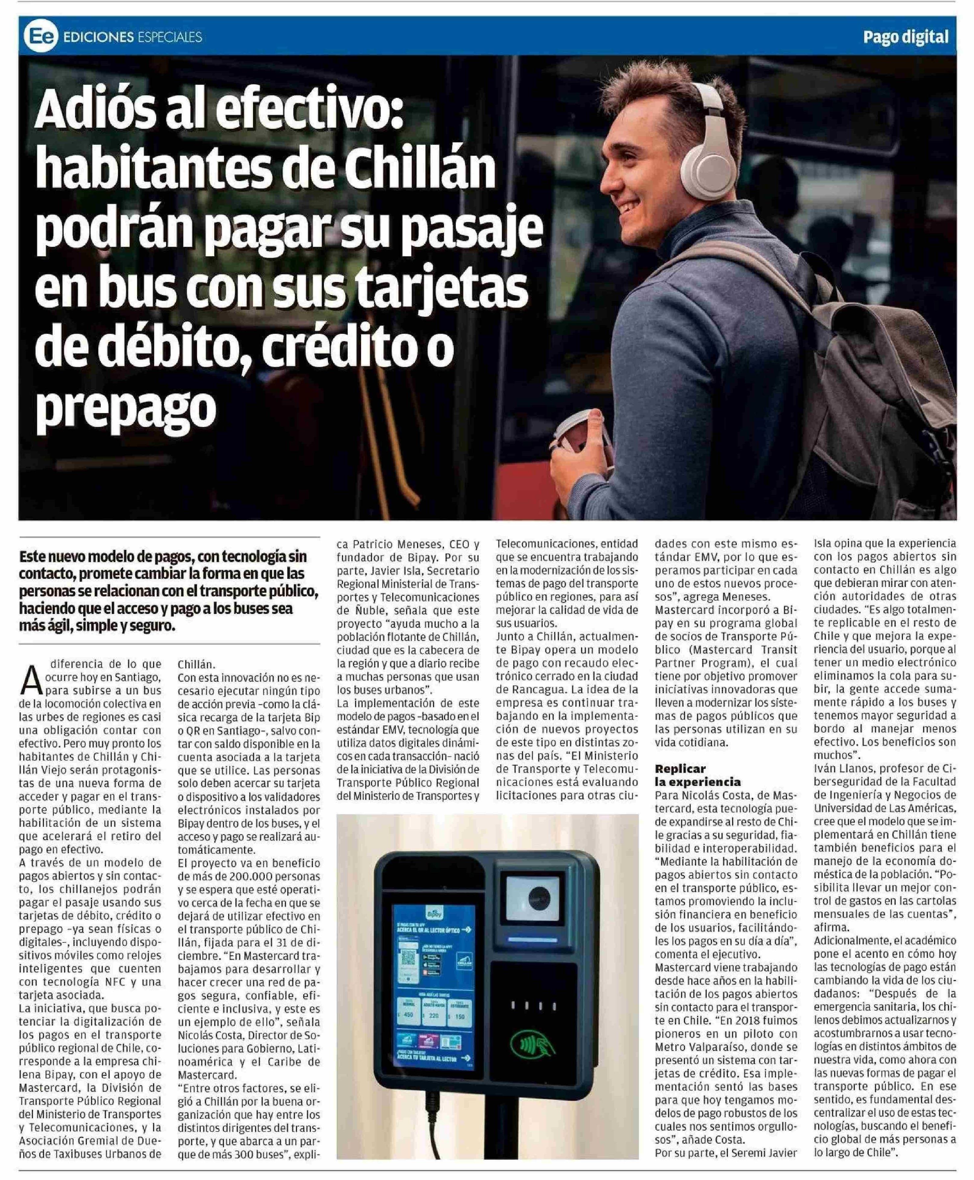 | Título: | Adiós al efectivo: habitantes de Chillán podrán pagar su pasaje en bus con sus tarjetas de débito, crédito o prepago |