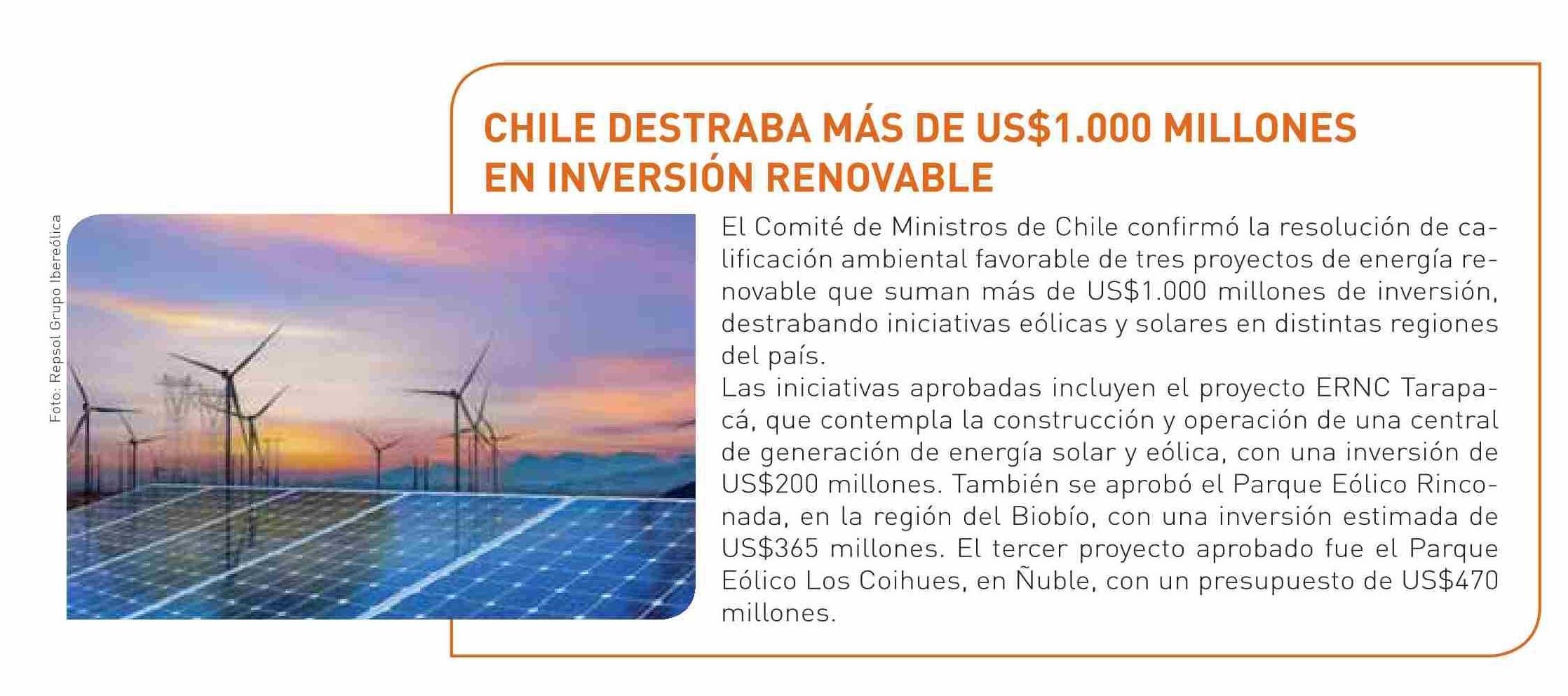 | Título: | CHILE DESTRABA MÁS DE US$1.000 MILLONES EN INVERSION RENOVABLE |
