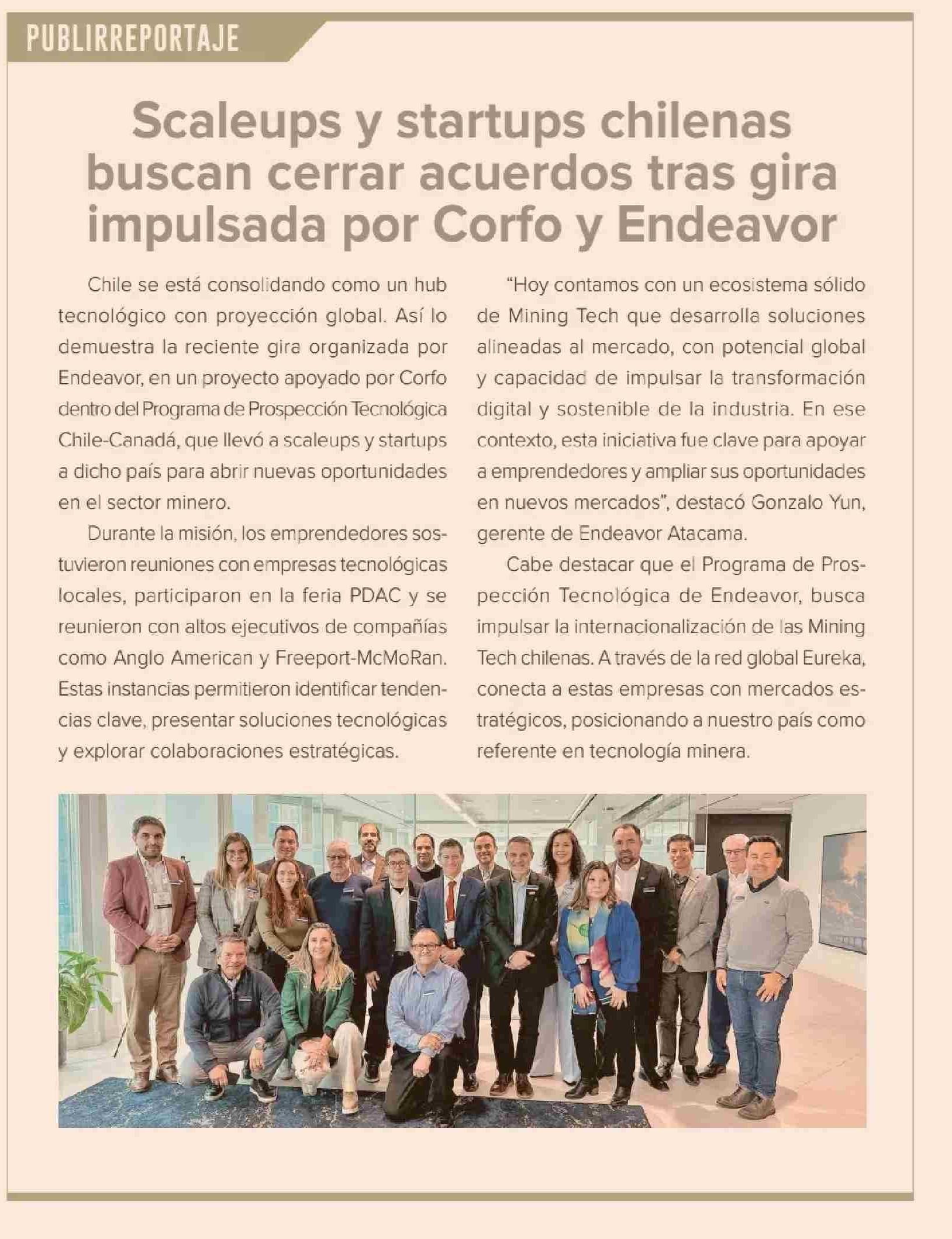 Scaleups y startups chilenas buscan cerrar acuerdos tras gira impulsada por Corfo y Endeavor 24-06-2025 Diario Financiero |
