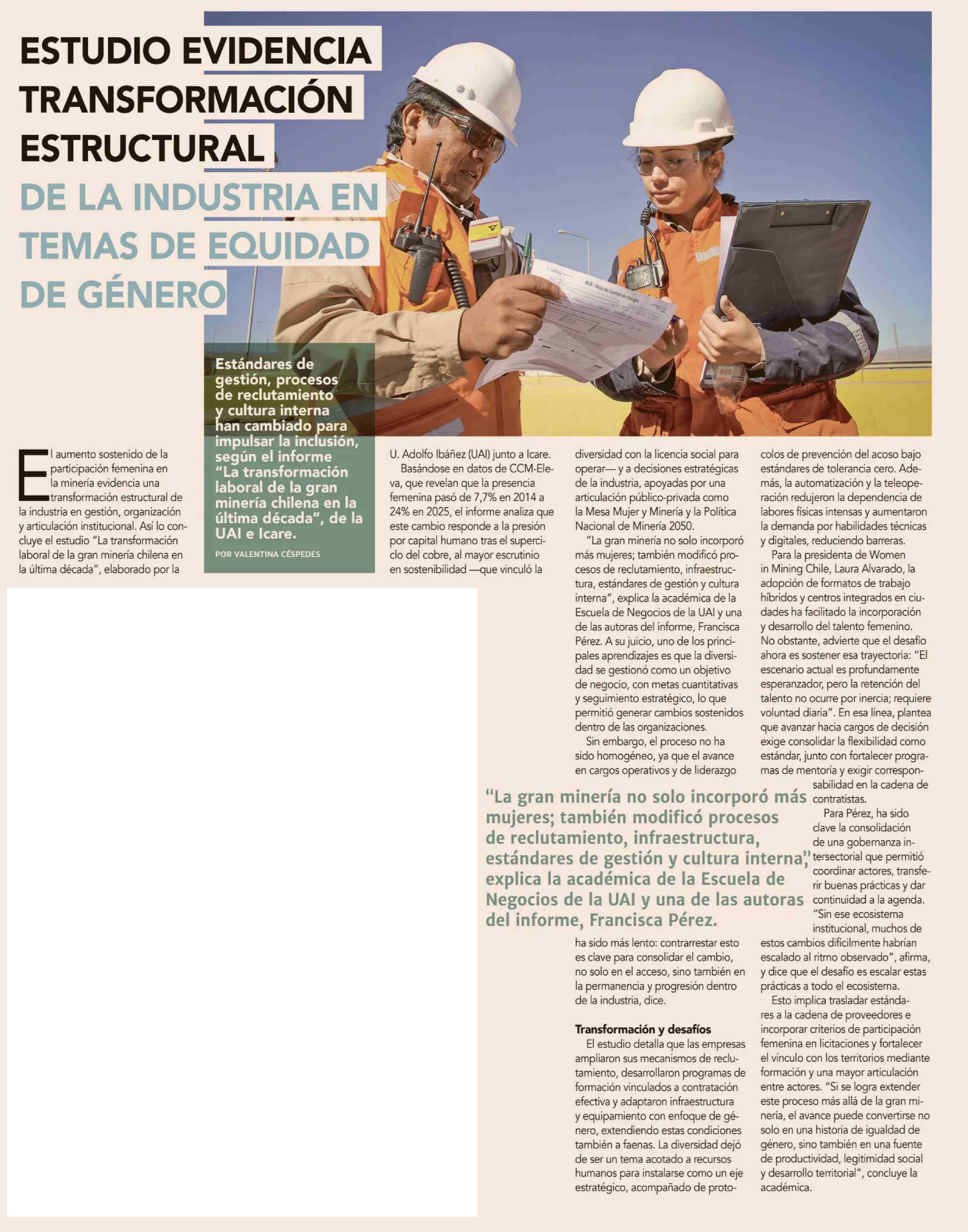 ESTUDIO EVIDENCIA TRANSFORMACIÓN ESTRUCTURAL DE LA INDUSTRIA EN TEMAS DE EQUIDAD DE GÉNERO 27-03-2026 Diario Financiero |
