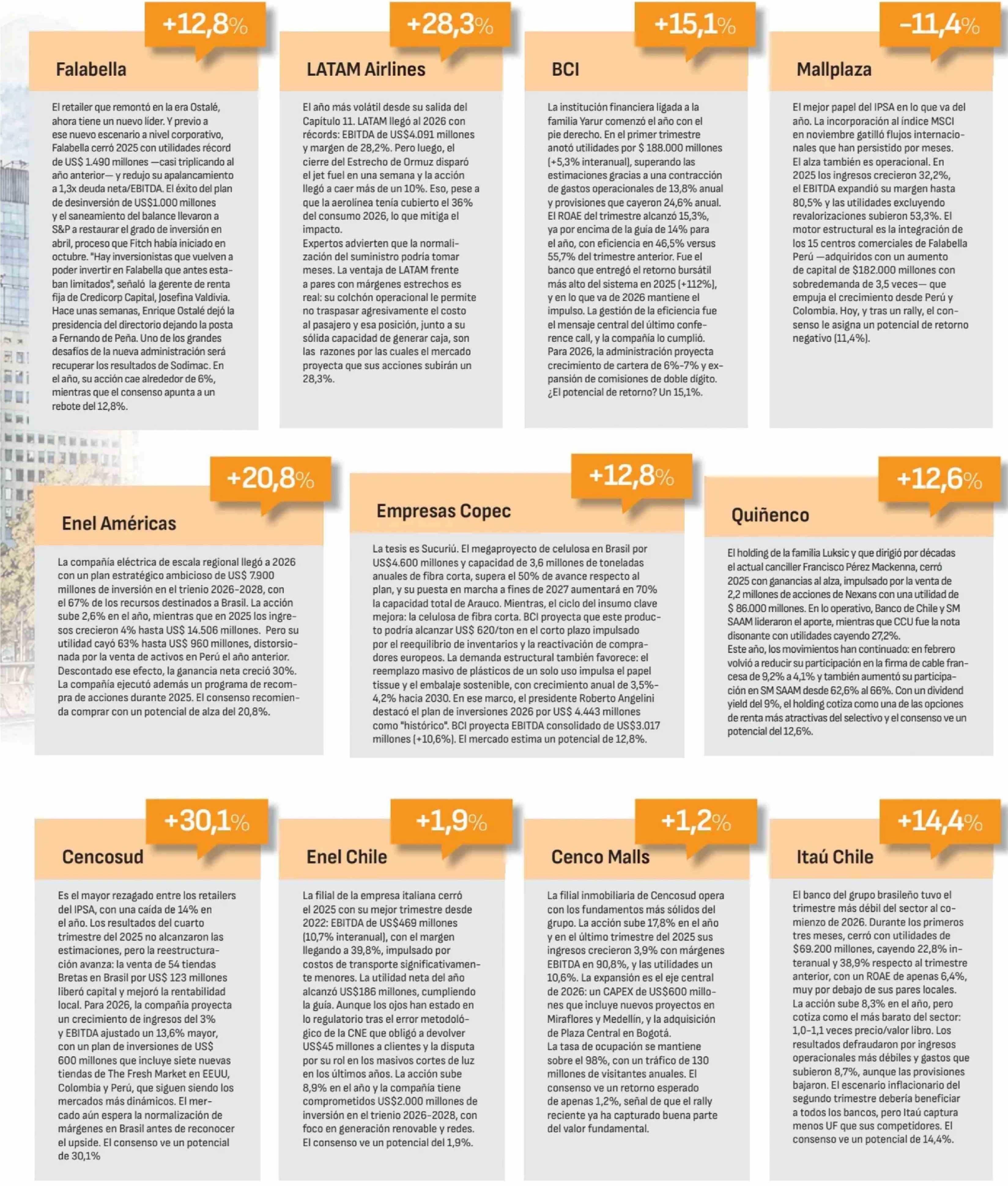 Título: Acciones de empresas IPSA: las proyecciones a 12 meses