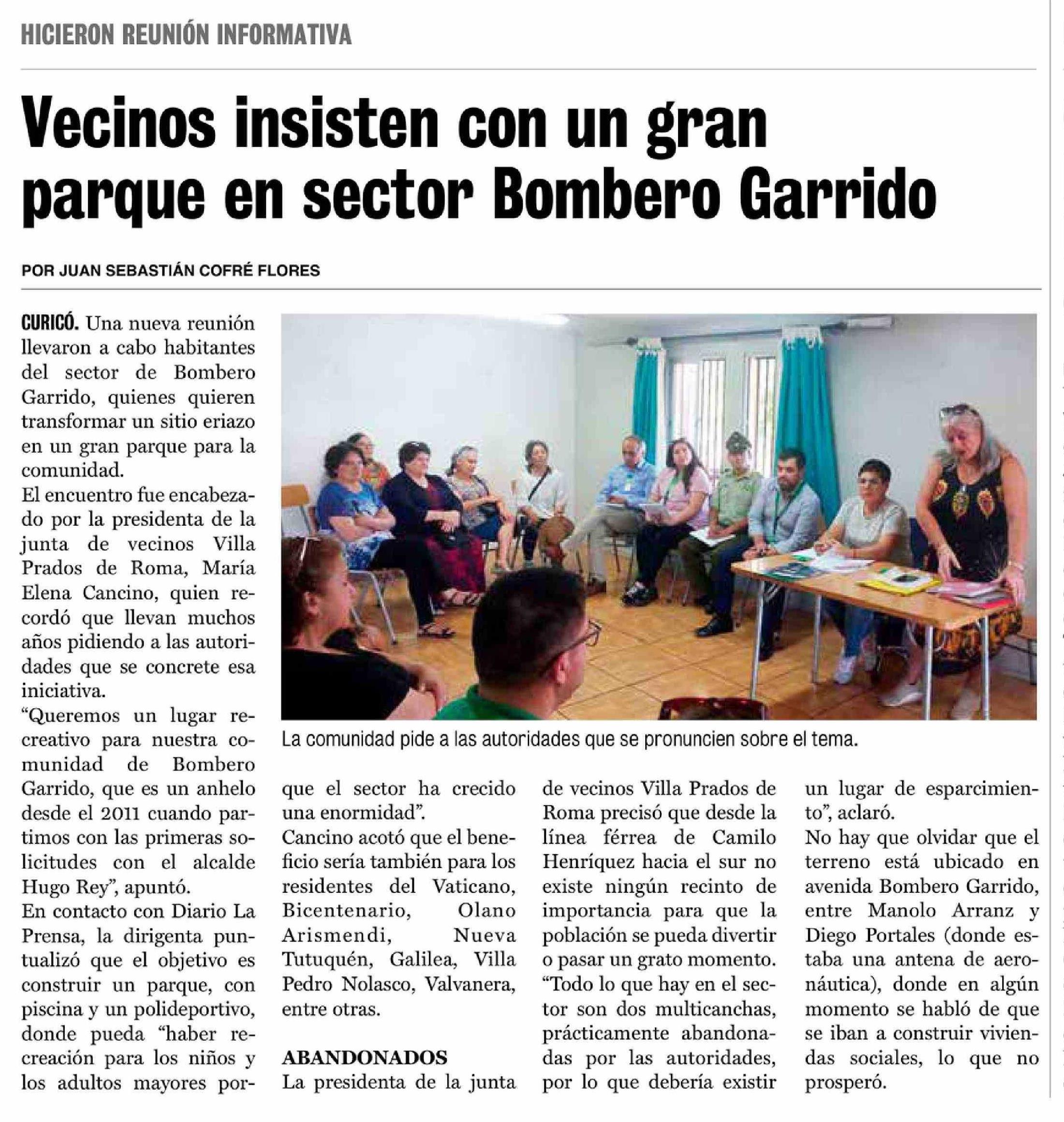 Vecinos insisten con un gran parque en sector Bombero Garrido 14-03-2026 La Prensa de Curicó |