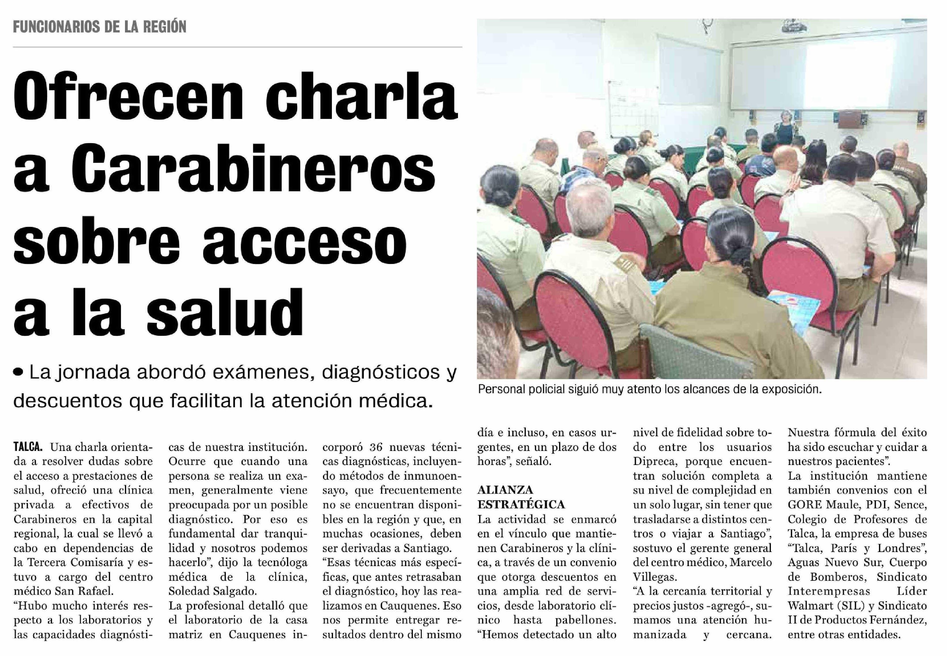 Ofrecen charla a Carabineros sobre acceso a la salud 16-02-2026 La Prensa de Curicó |