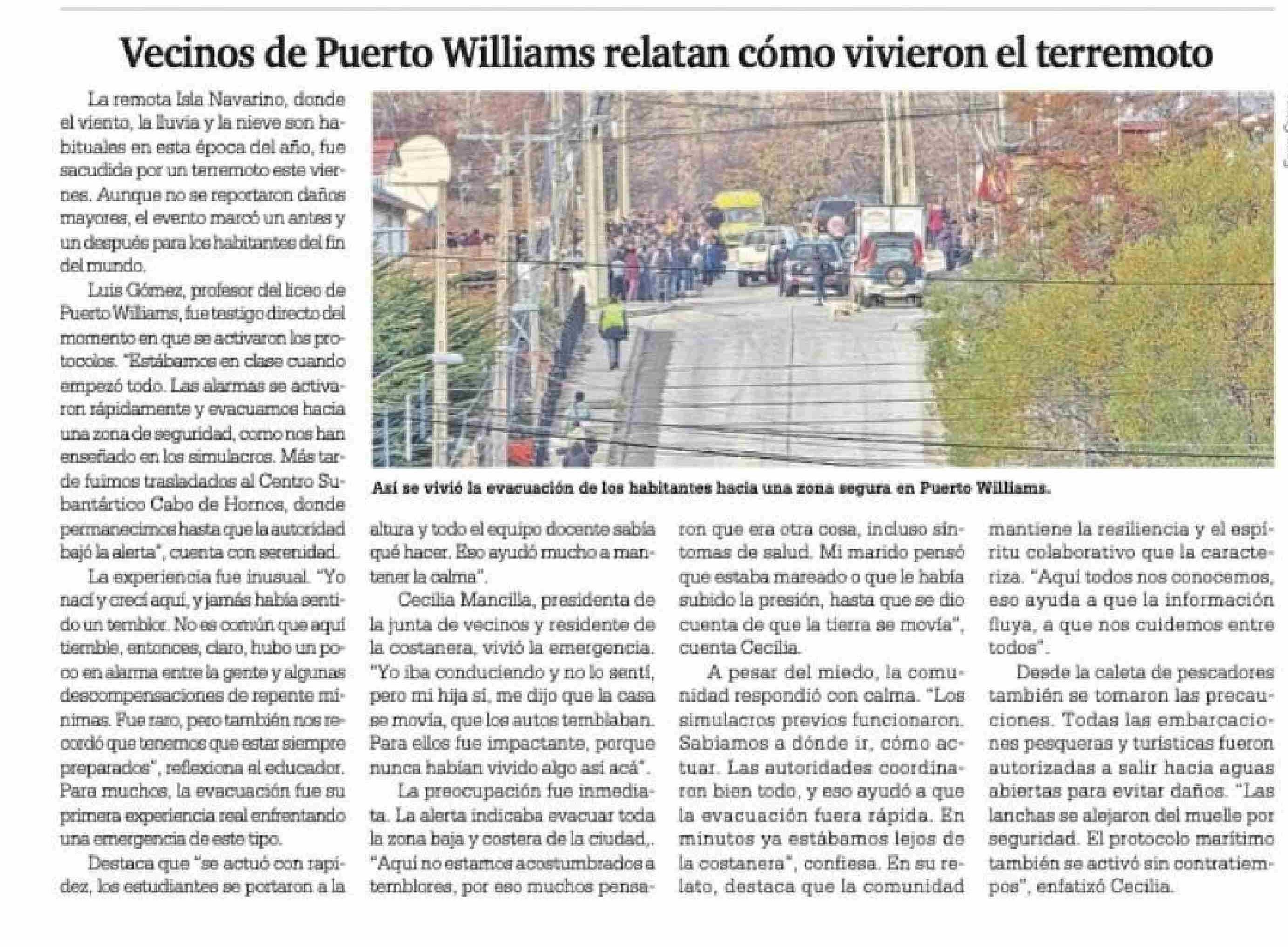 Vecinos de Puerto Williams relatan cómo vivieron el cinc 03-05-2025 La Prensa Austral |