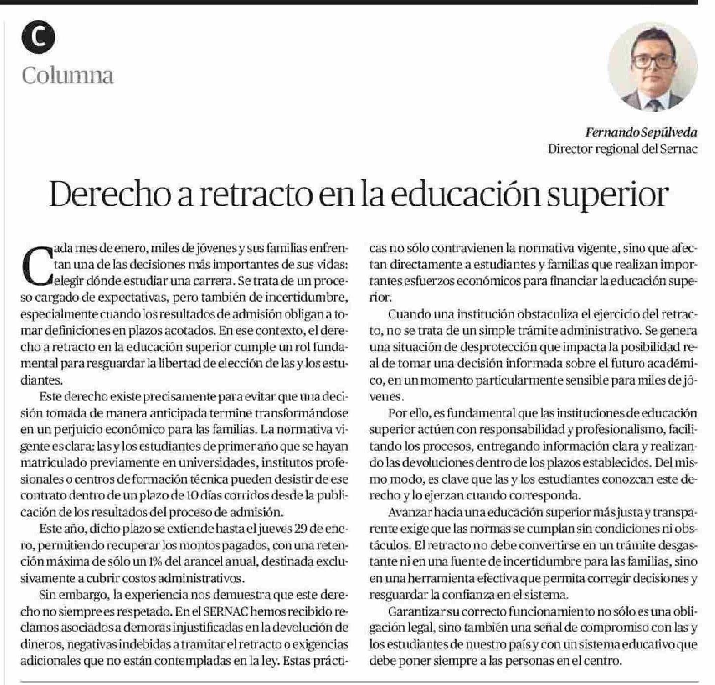Columnas de Opinión: Derecho a retracto en la educación superior