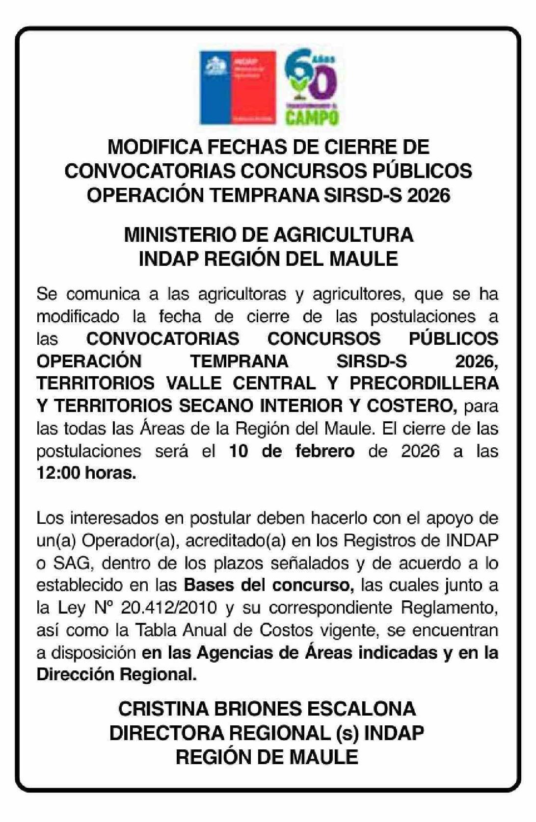 MINISTERIO DE AGRICULTURA INDAP REGIÓN DEL MAULE 05-02-2026 La Prensa de Curicó |