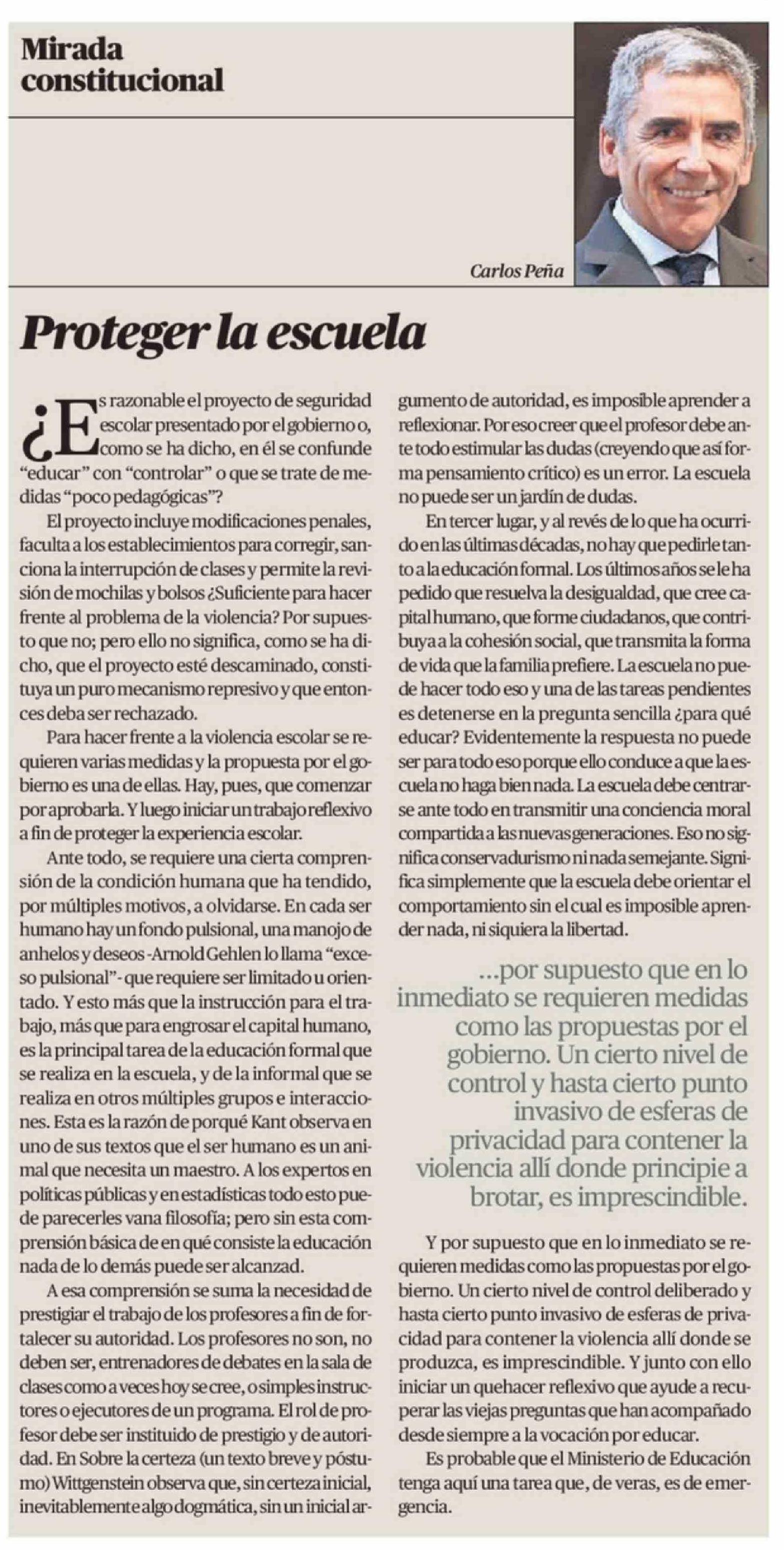 Columnas de Opinión: Proteger la escuela 08-04-2026 El Mercurio de Antofagasta |