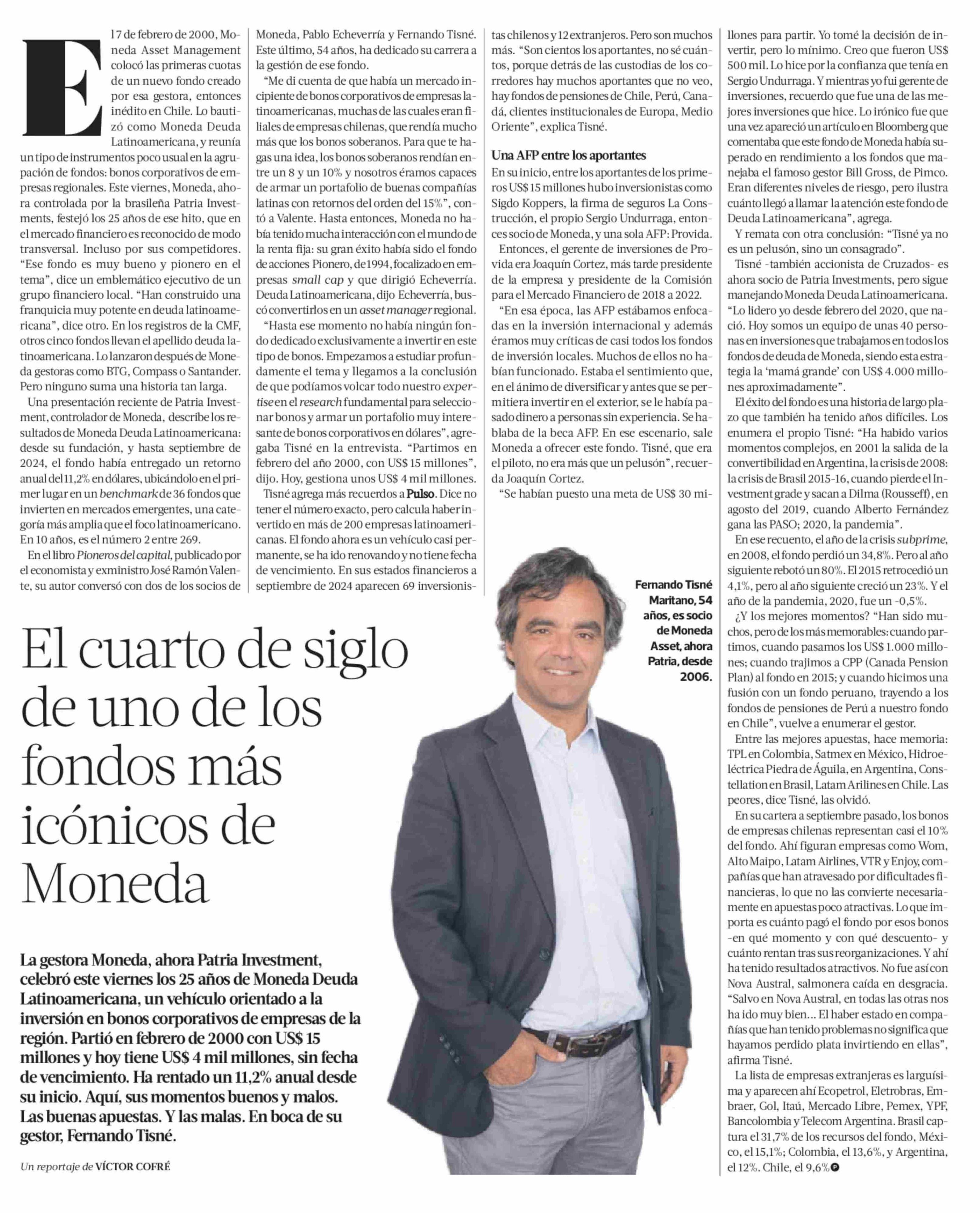 El cuarto de siglo de uno de los fondos más icónicos de Moneda 08-02-2025 La Tercera |