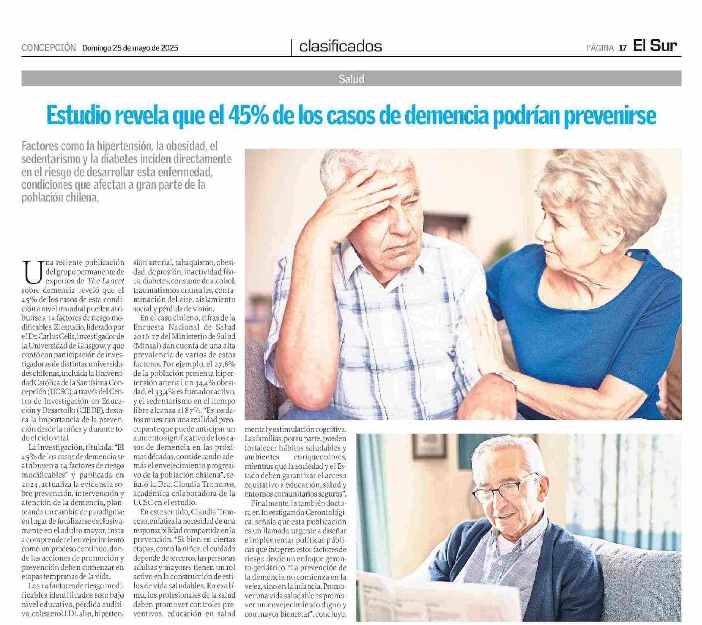 Estudio revela que el 45% de los casos de demencia podrían prevenirse 25-05-2025 El Sur |