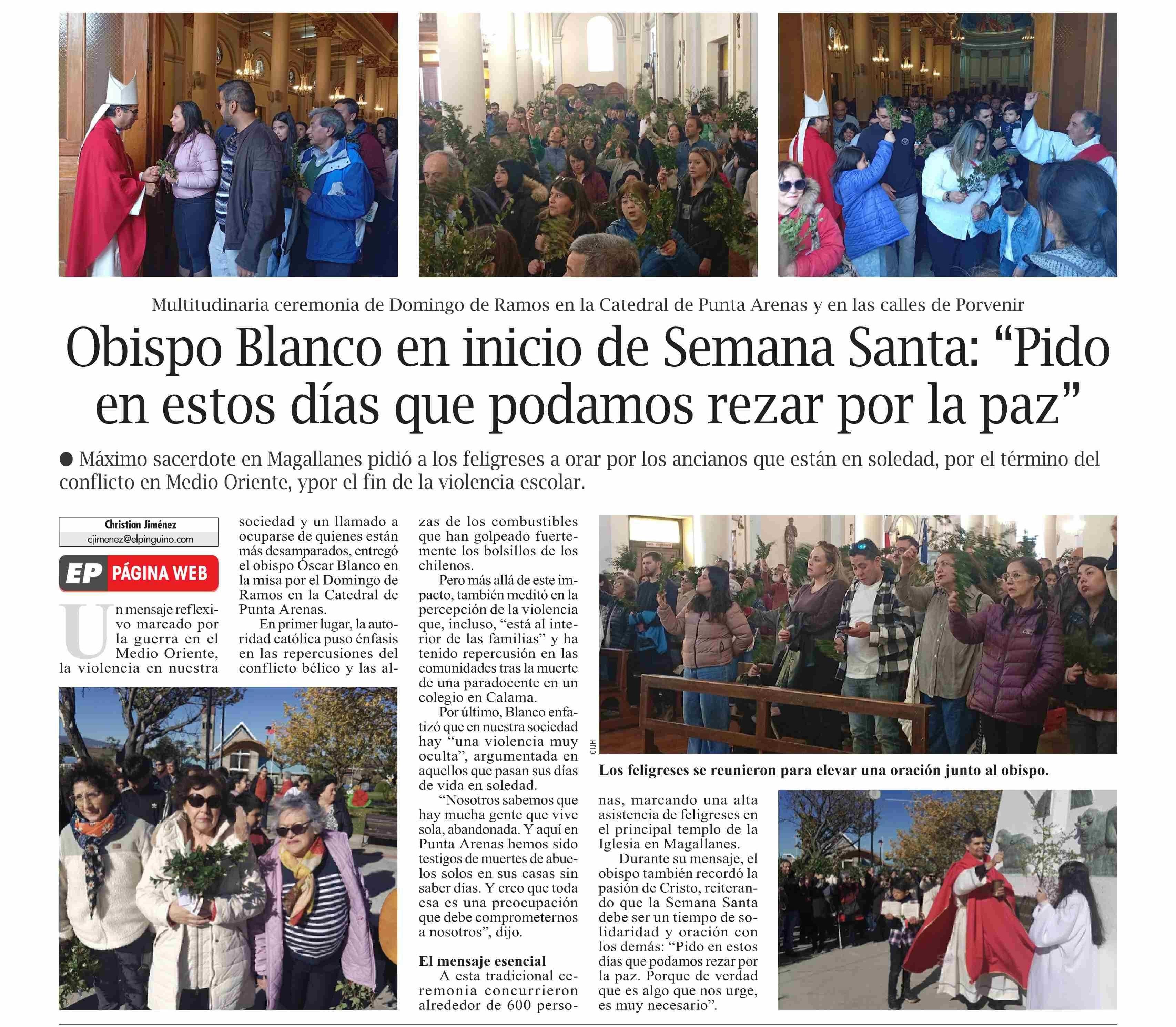 Obispo Blanco en inicio de Semana Santa: “Pido en estos días que podamos rezar por la paz” 30-03-2026 El Pingüino |