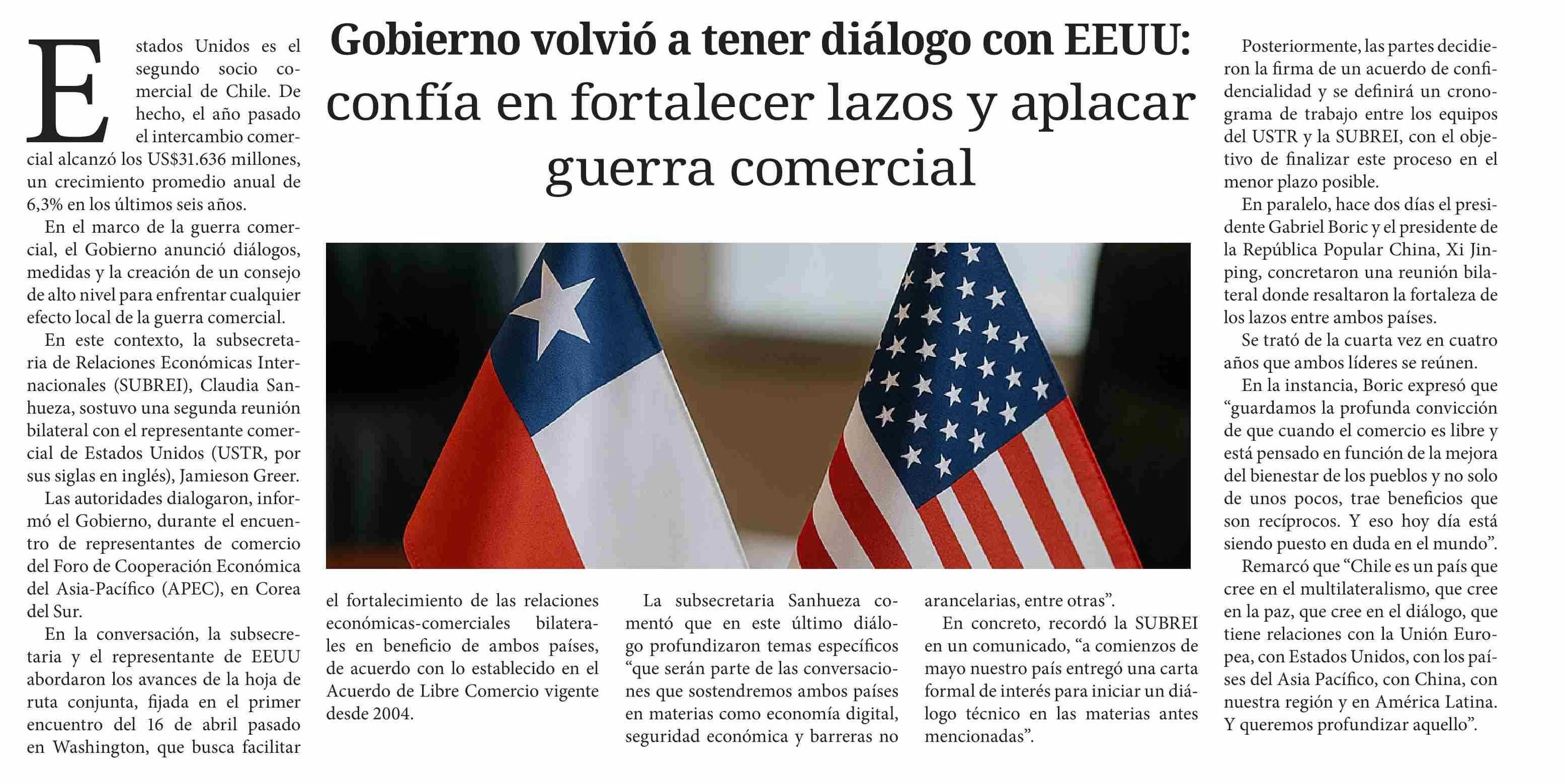 | Título: | Gobierno volvió a tener diálogo con EEUU: confía en fortalecer lazos y aplacar guerra comercial |