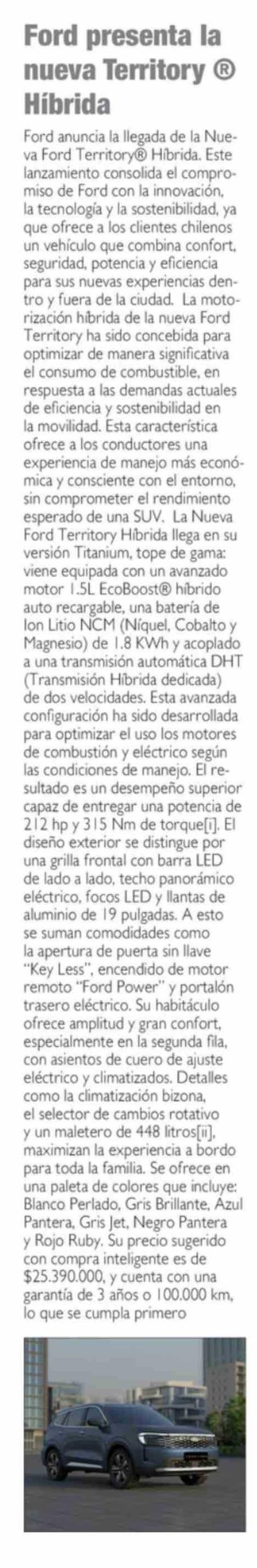 | Título: | Ford presenta la nueva Territory ® Híbrida |