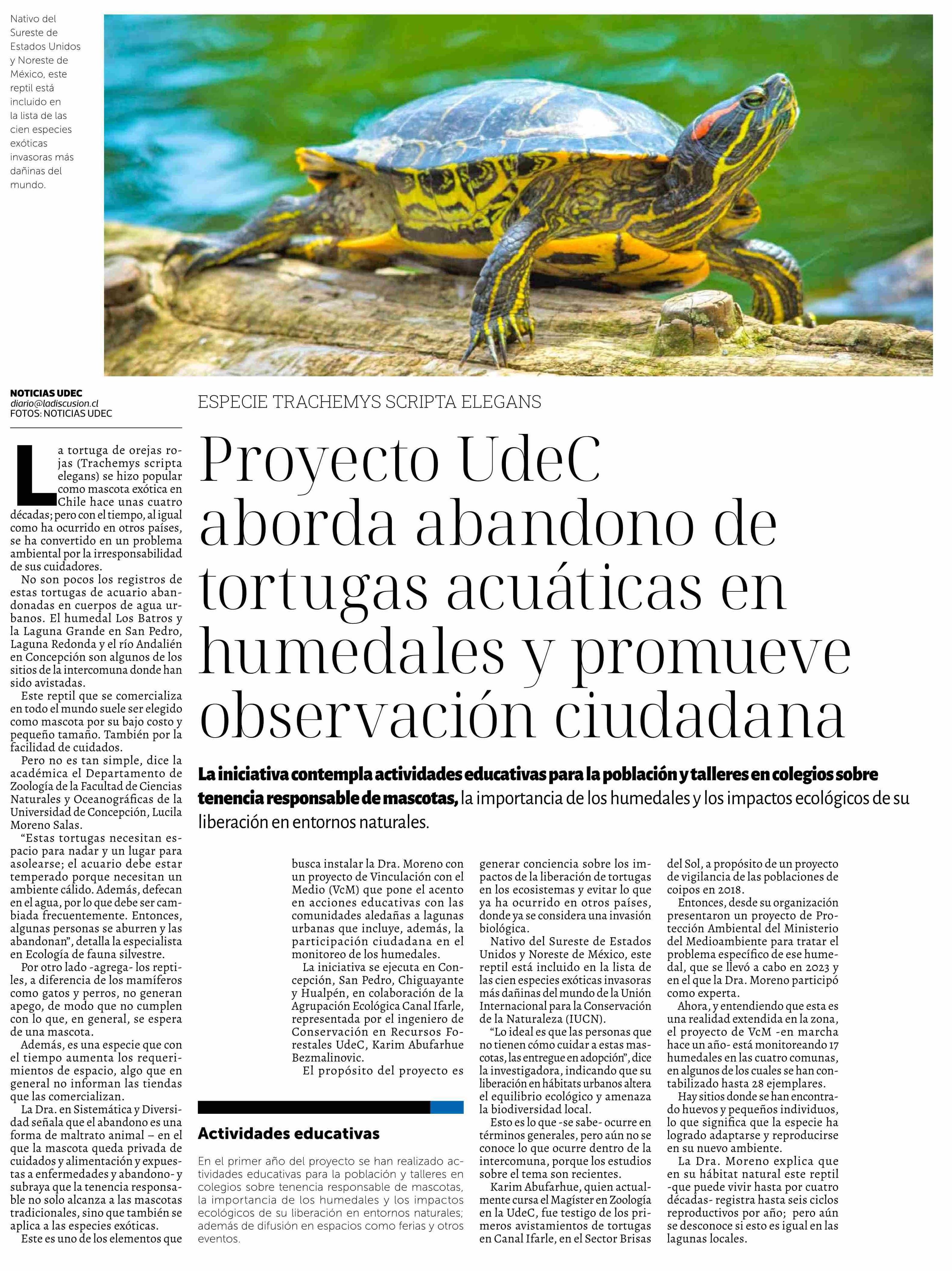 Título: Proyecto UdeC aborda abandono de tortugas acuáticas en humedales y promueve observación ciudadana