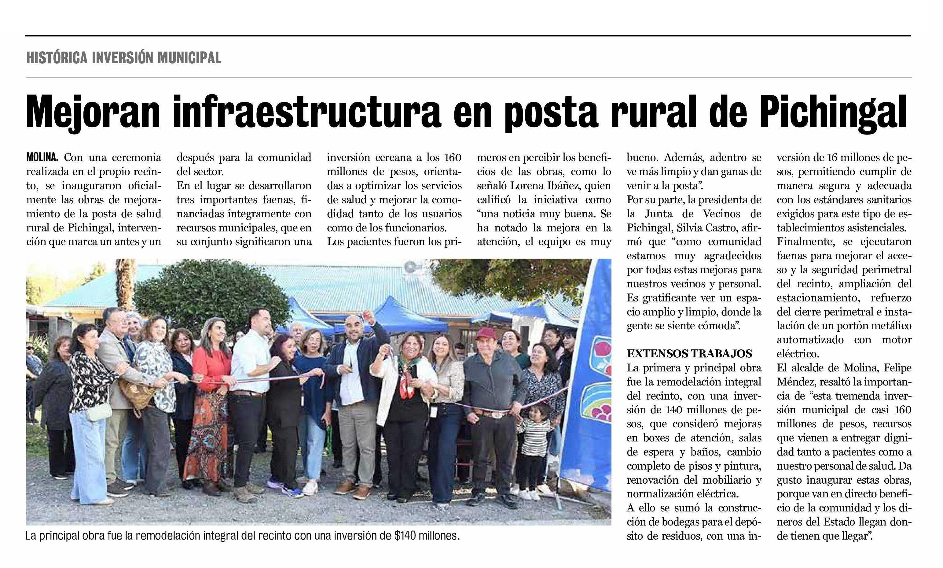 Mejoran infraestructura en posta rural de Pichingal 08-04-2026 La Prensa de Curicó |