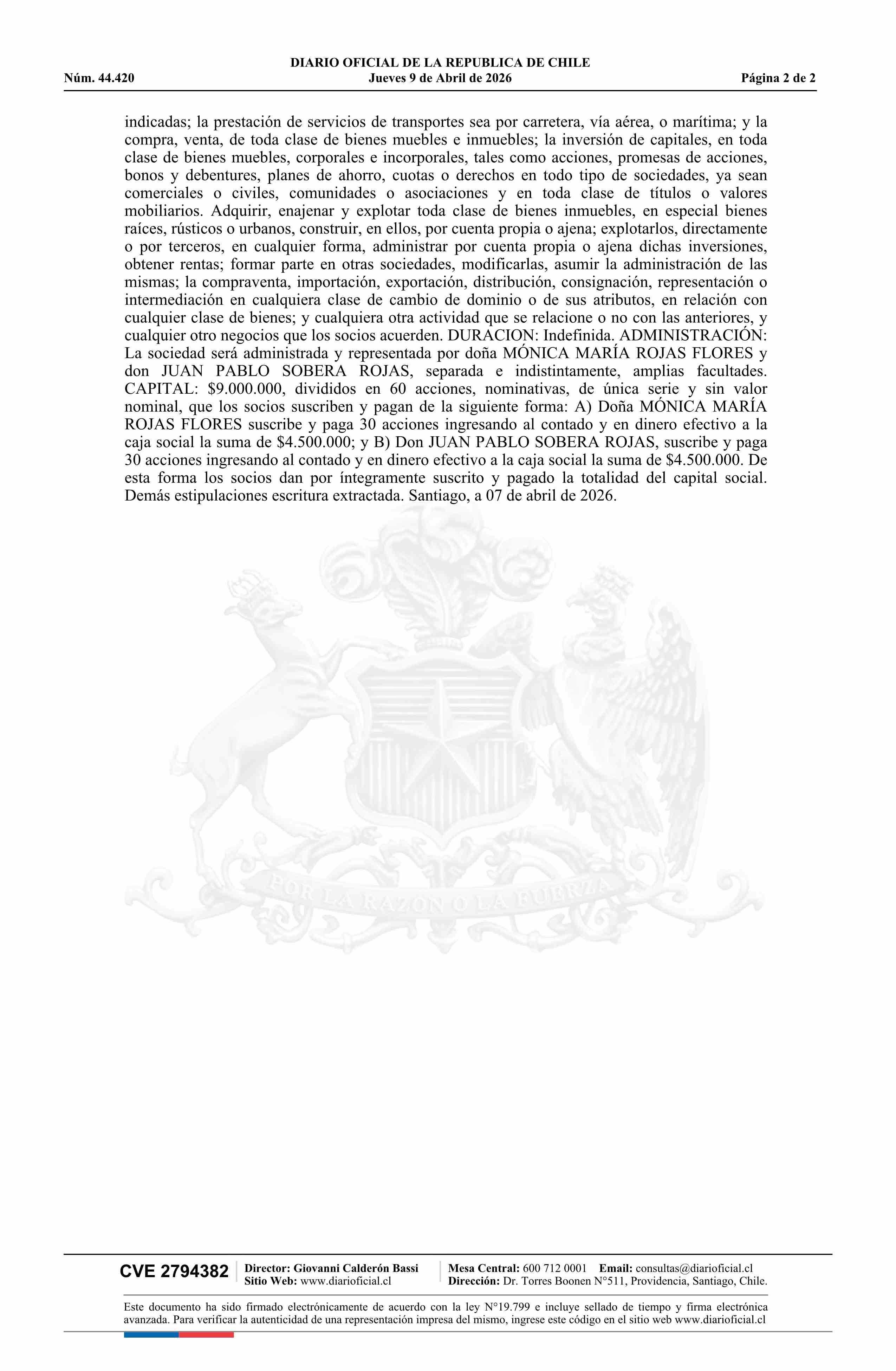 EUSKARA SpA 09-04-2026 Diario Oficial Edición Electrónica |