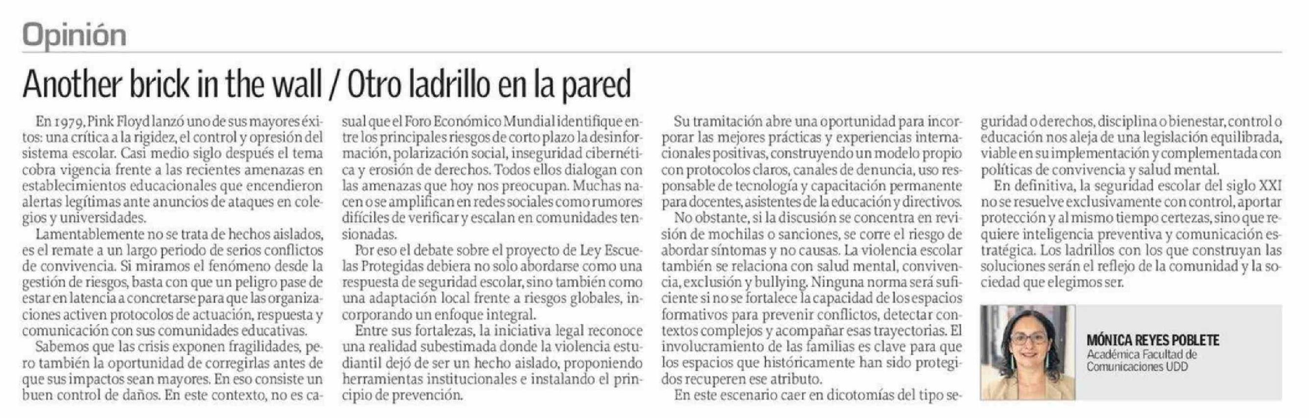 Título: Columnas de Opinión: Another brick in the wall / Otro ladrillo en la pared