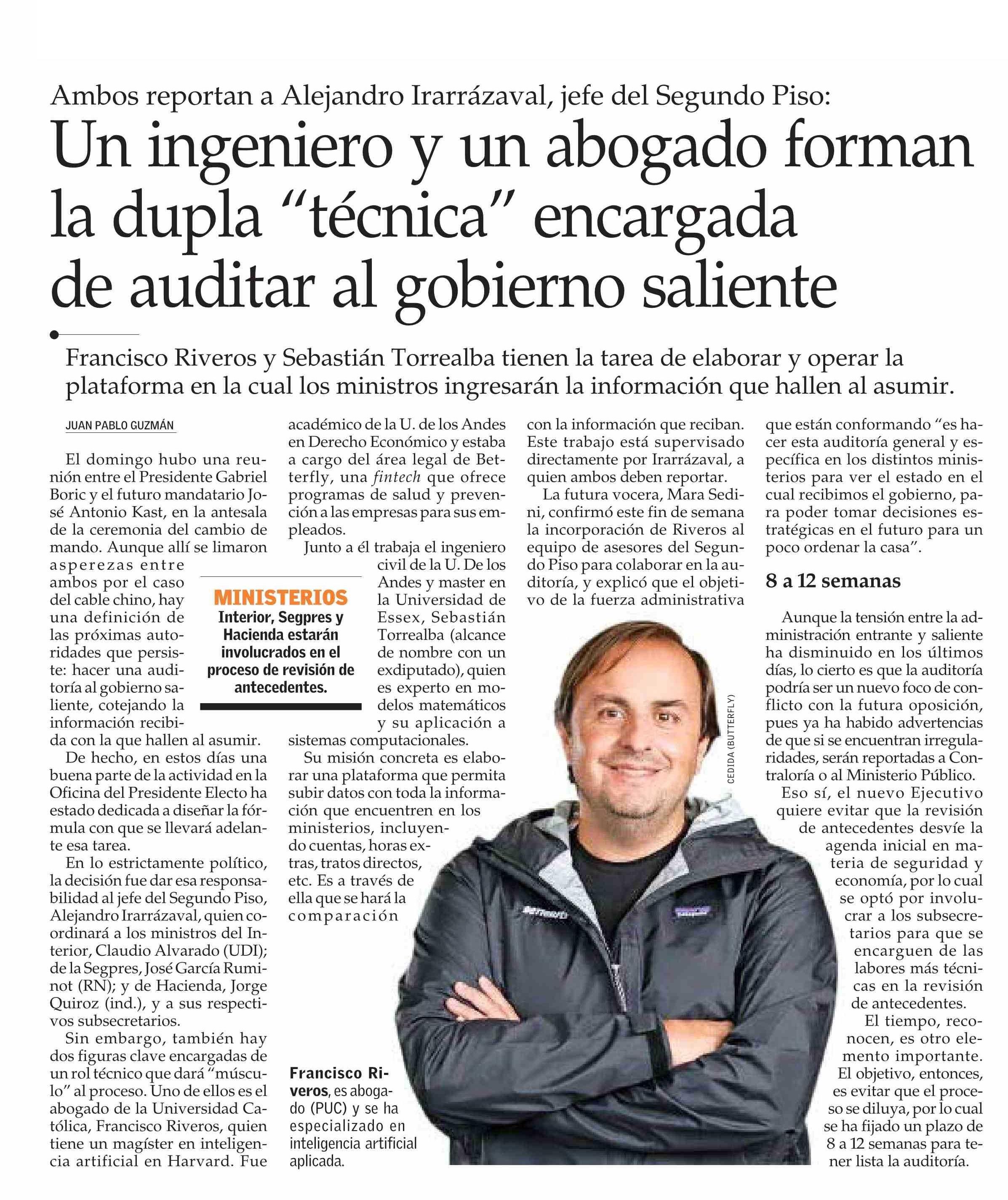 Un ingeniero y un abogado forman la dupla “técnica” encargada de auditar al gobierno saliente 10-03-2026 El Mercurio |