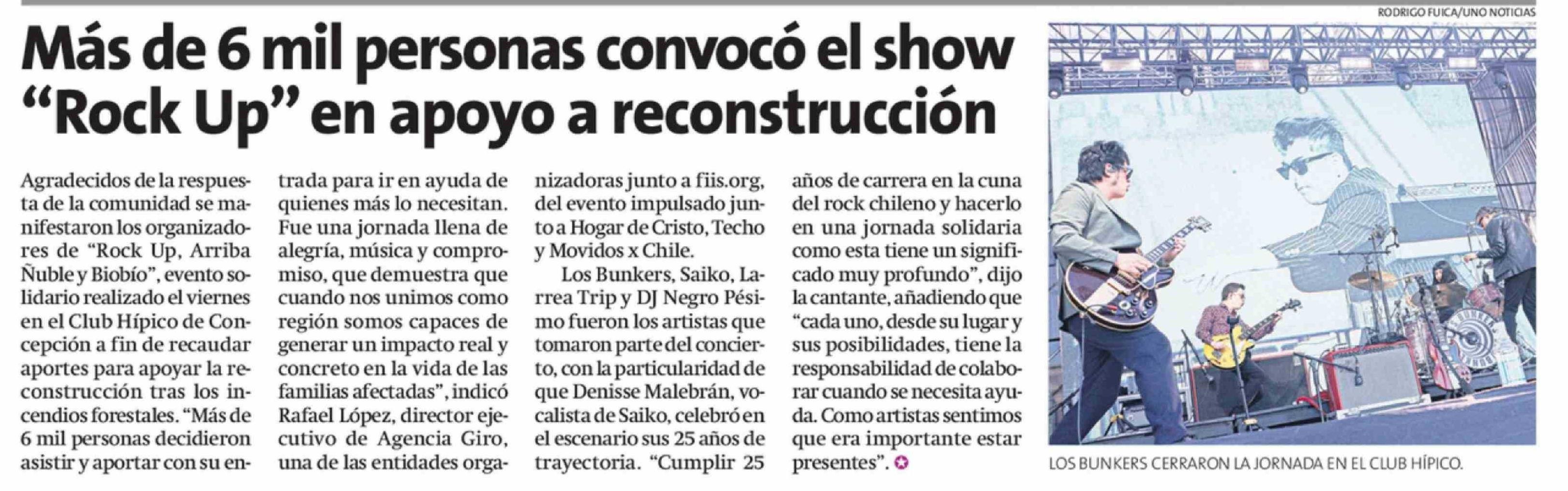 | Título: | Más de 6 mil personas convocó el show "Rock Up" en apoyo a reconstrucción |