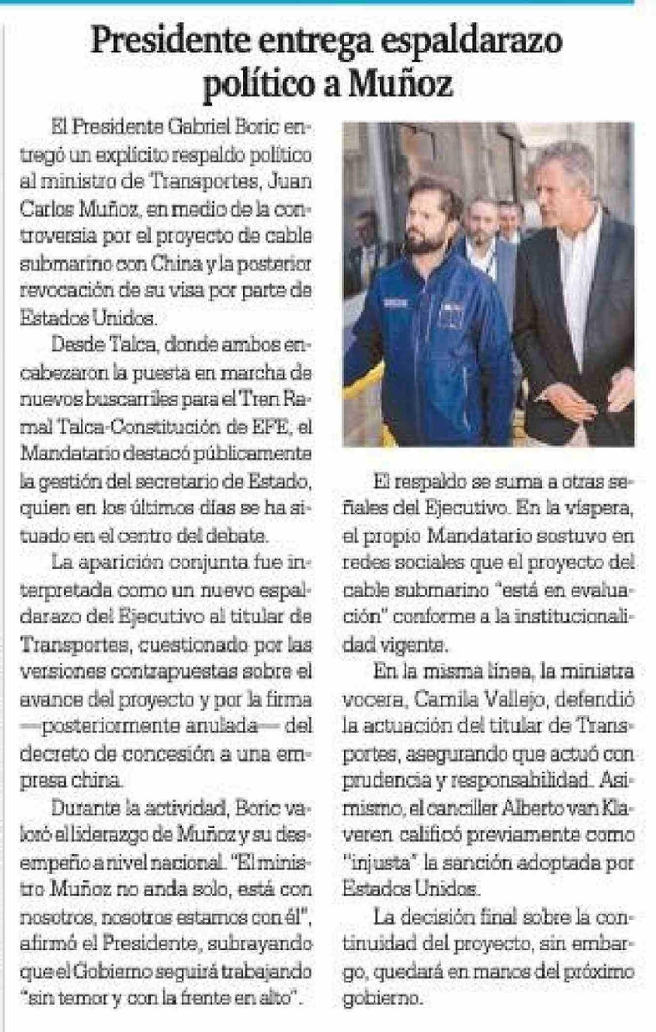 Título: Presidente entrega espaldarazo político a Muñoz