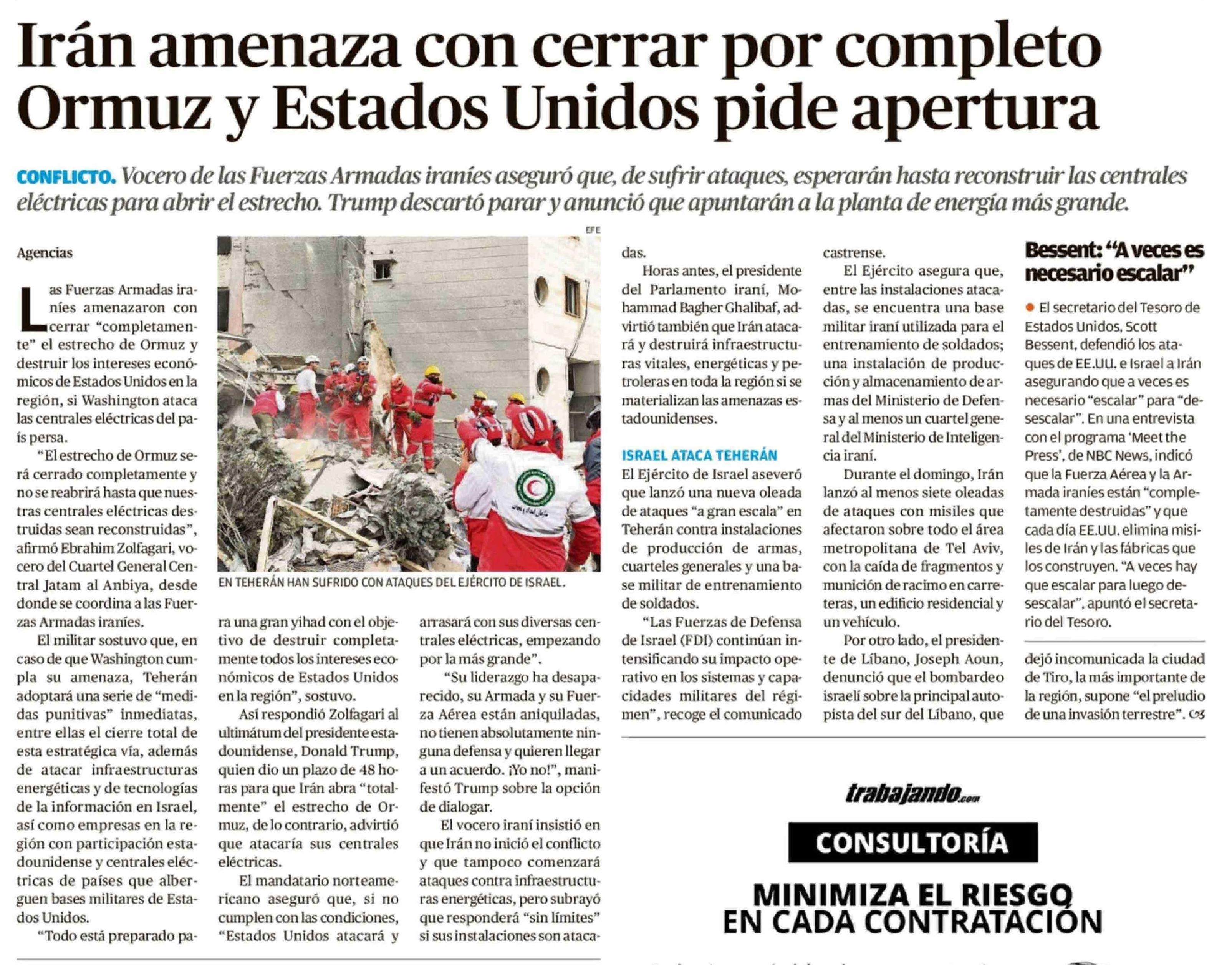 Título: Irán amenaza con cerrar por completo Ormuz y Estados Unidos pide apertura