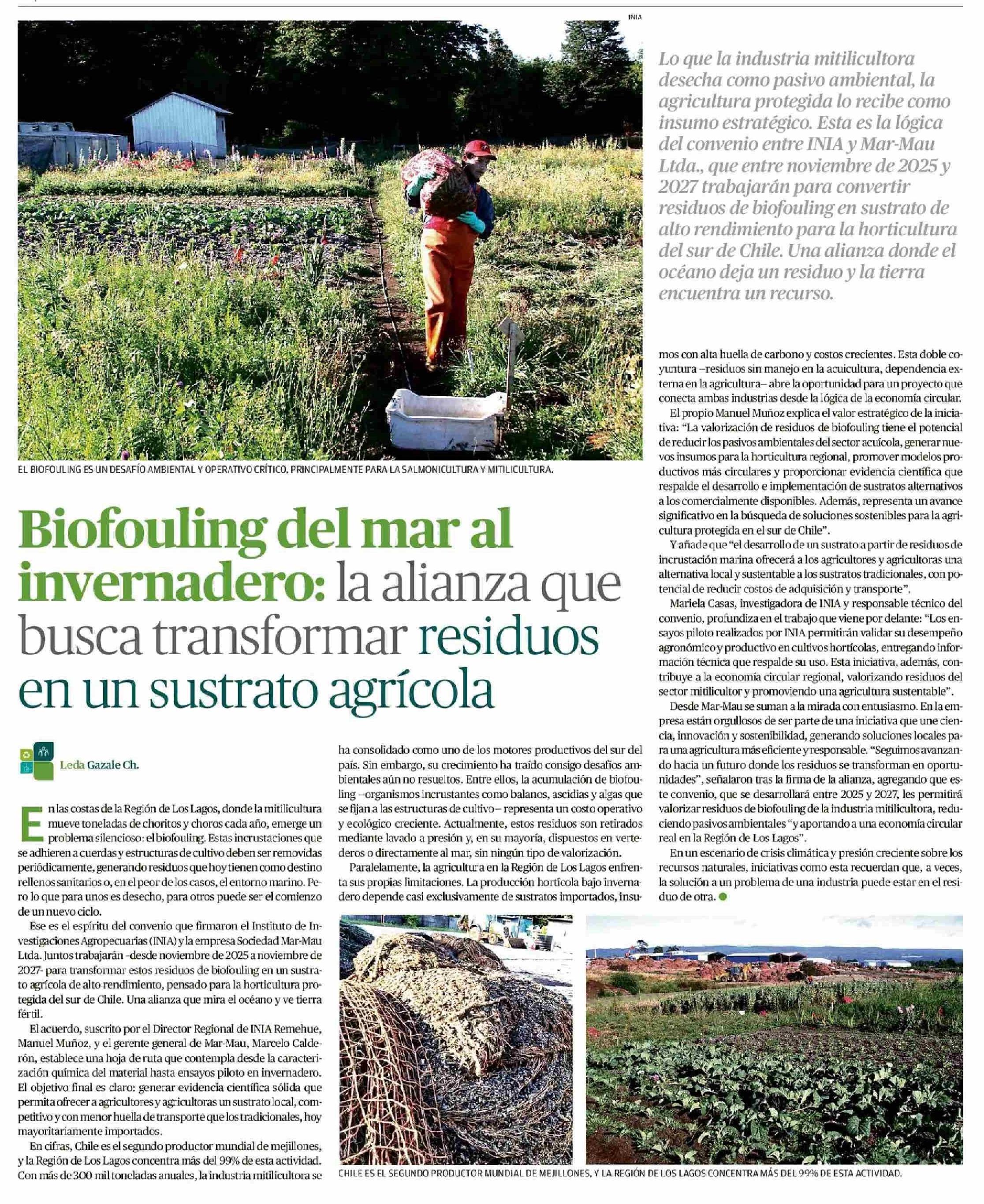 Biofouling del mar al invernadero: la alianza que busca transformar residuos en un sustrato agrícola 15-02-2026 El Austral de Osorno |
