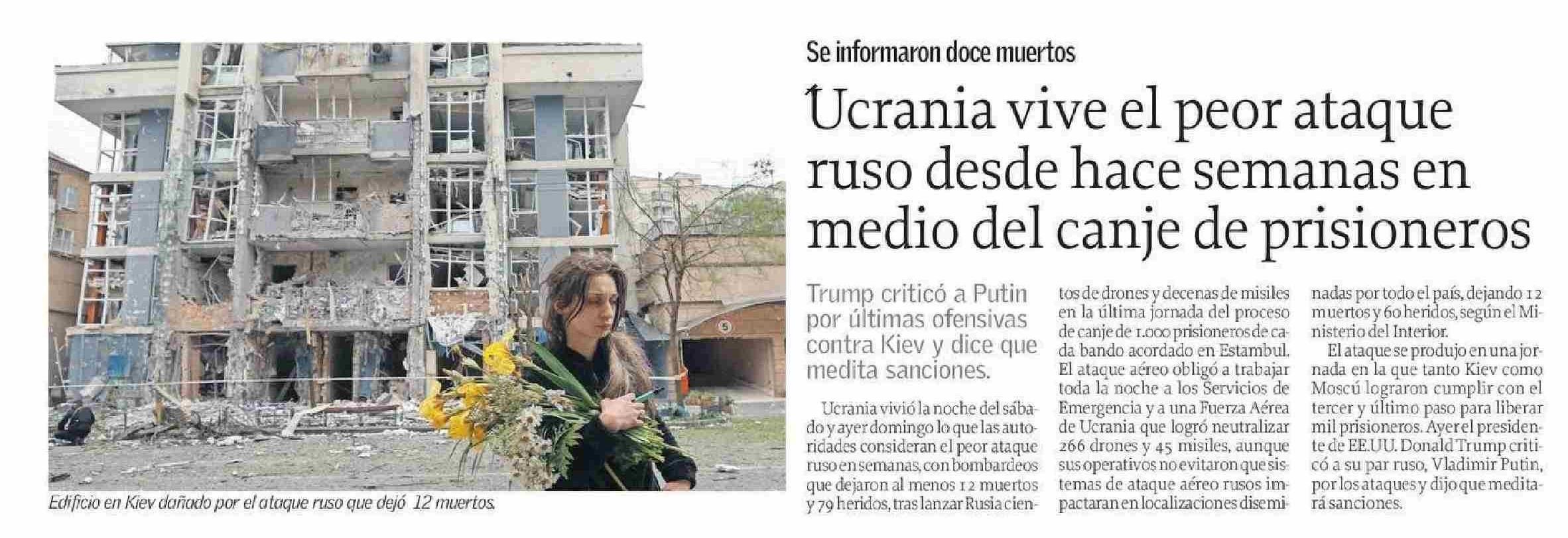 Ucrania vive el peor ataque ruso desde hace semanas en medio del canje de prisioneros 26-05-2025 El Sur |