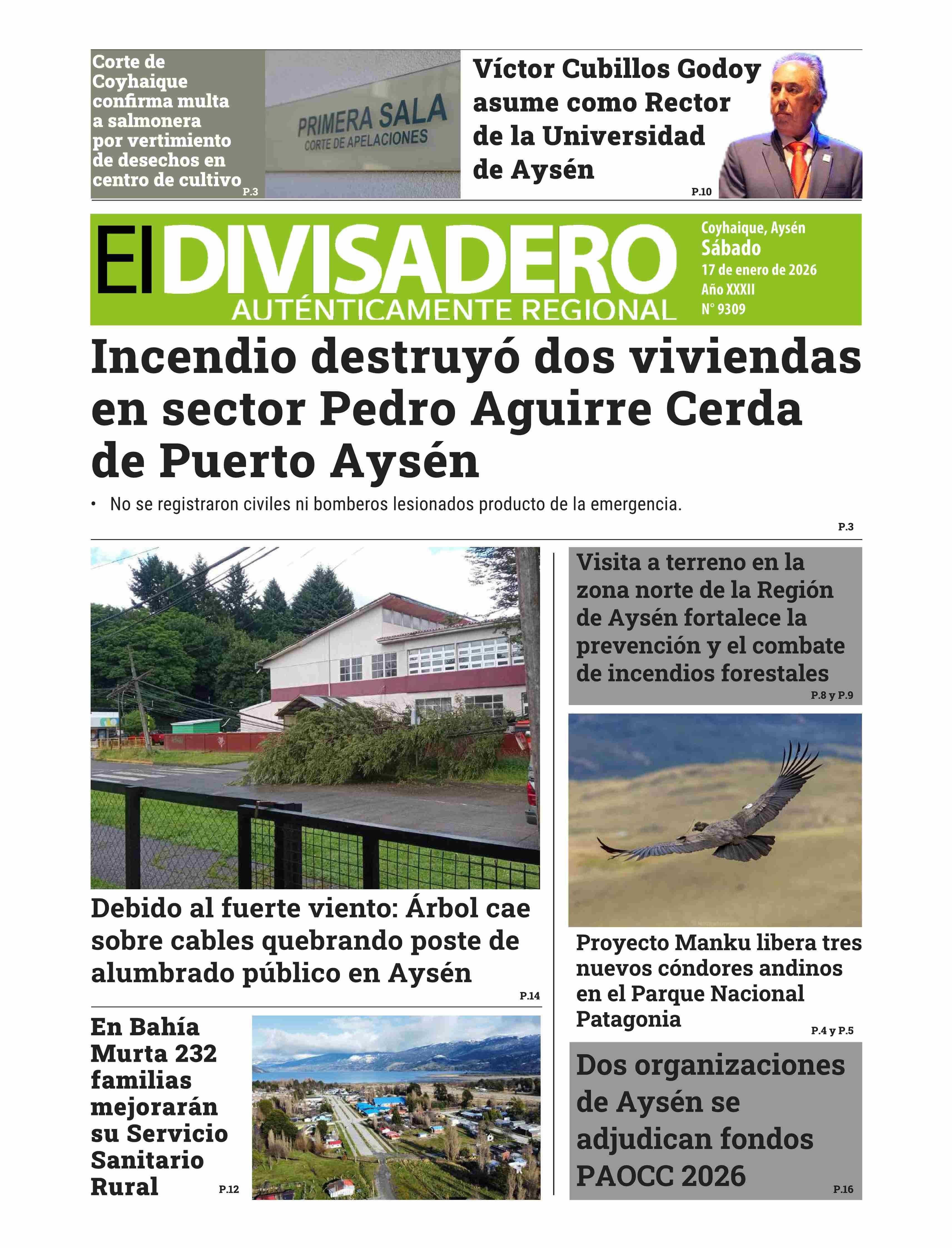 | Fecha: | 17-01-2026 | Sector: | Portada | Región: | Región Aysén del General Carlos Ibáñez del Campo |