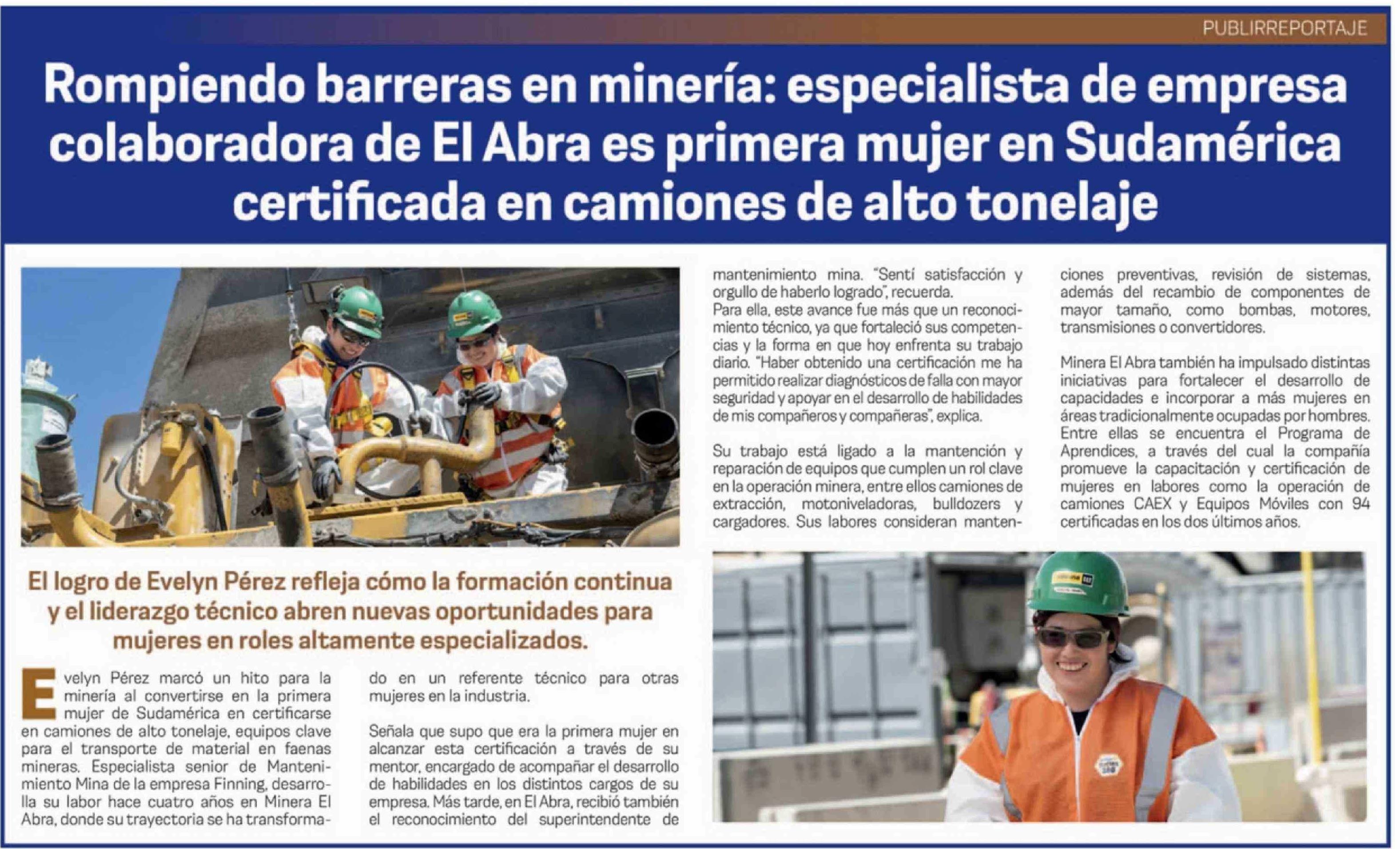 Título: Rompiendo barreras en minería: especialista de empresa colaboradora de El Abra es primera mujer en Sudamérica certificada en camiones de alto tonelaje