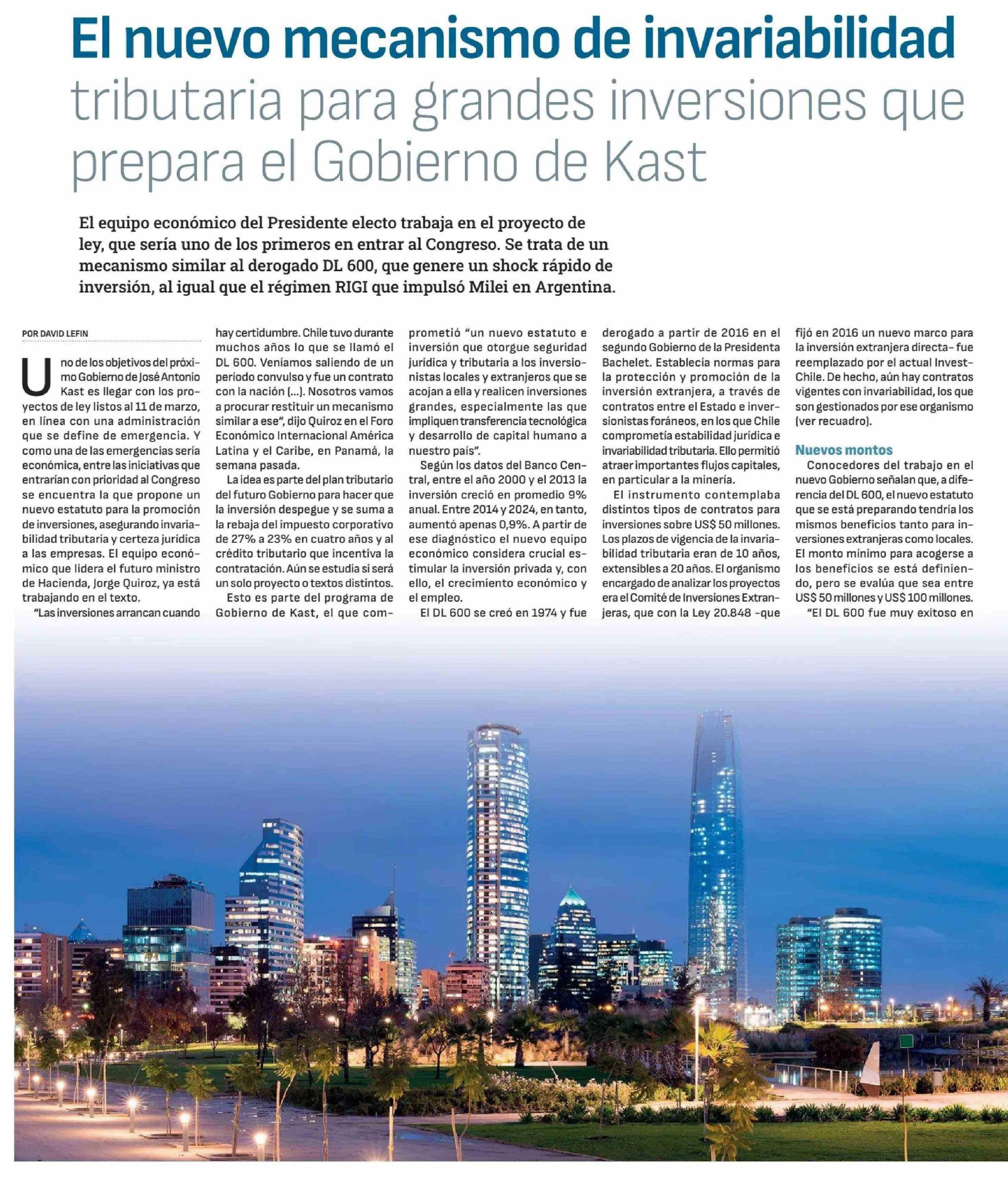Título: El nuevo mecanismo de invariabilidad tributaria para grandes inversiones que prepara el Gobierno de Kast